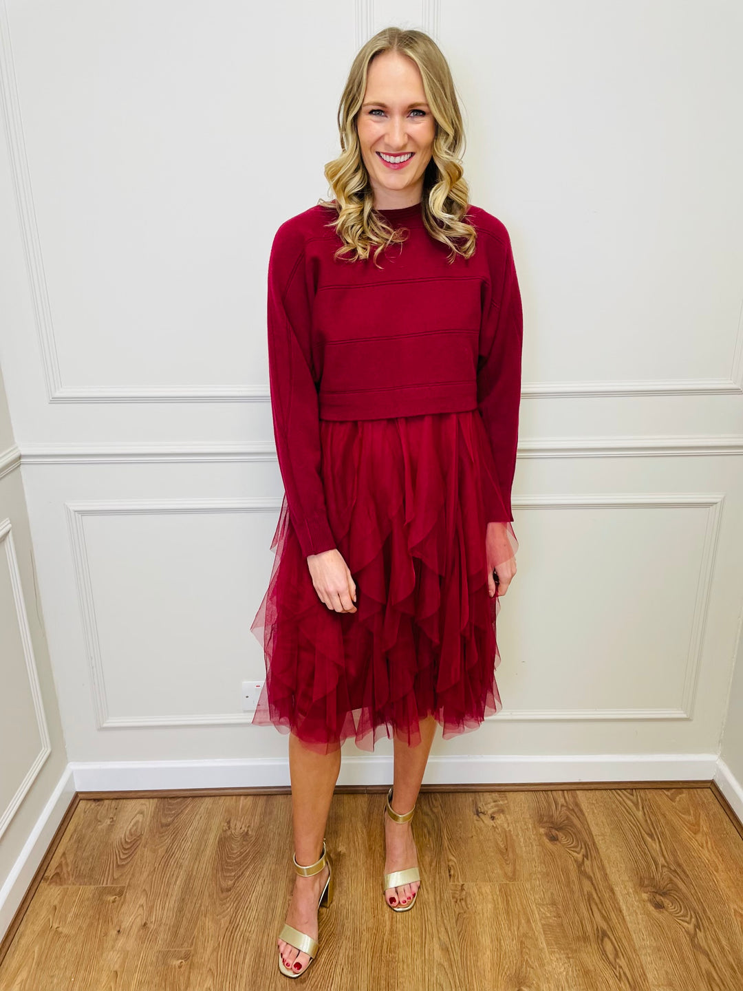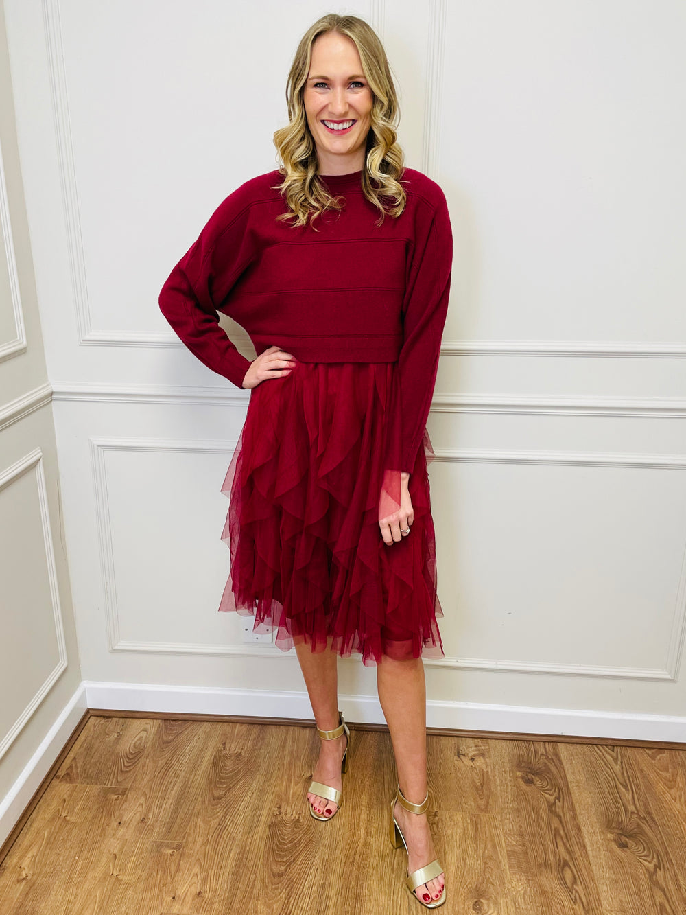 "BELINDA" Cable Knit Roll Neck Dress-Red