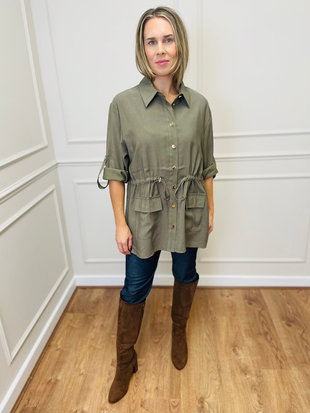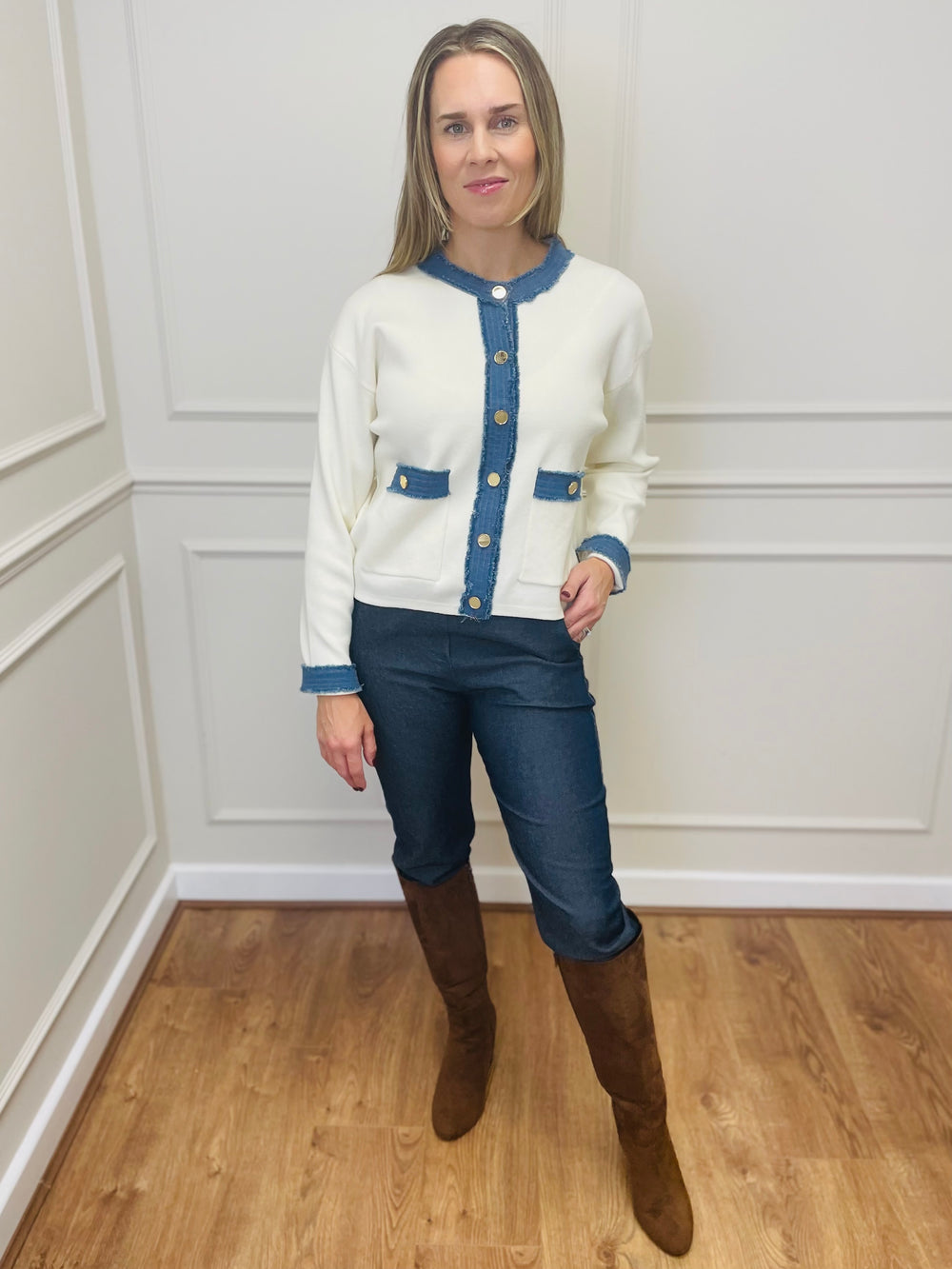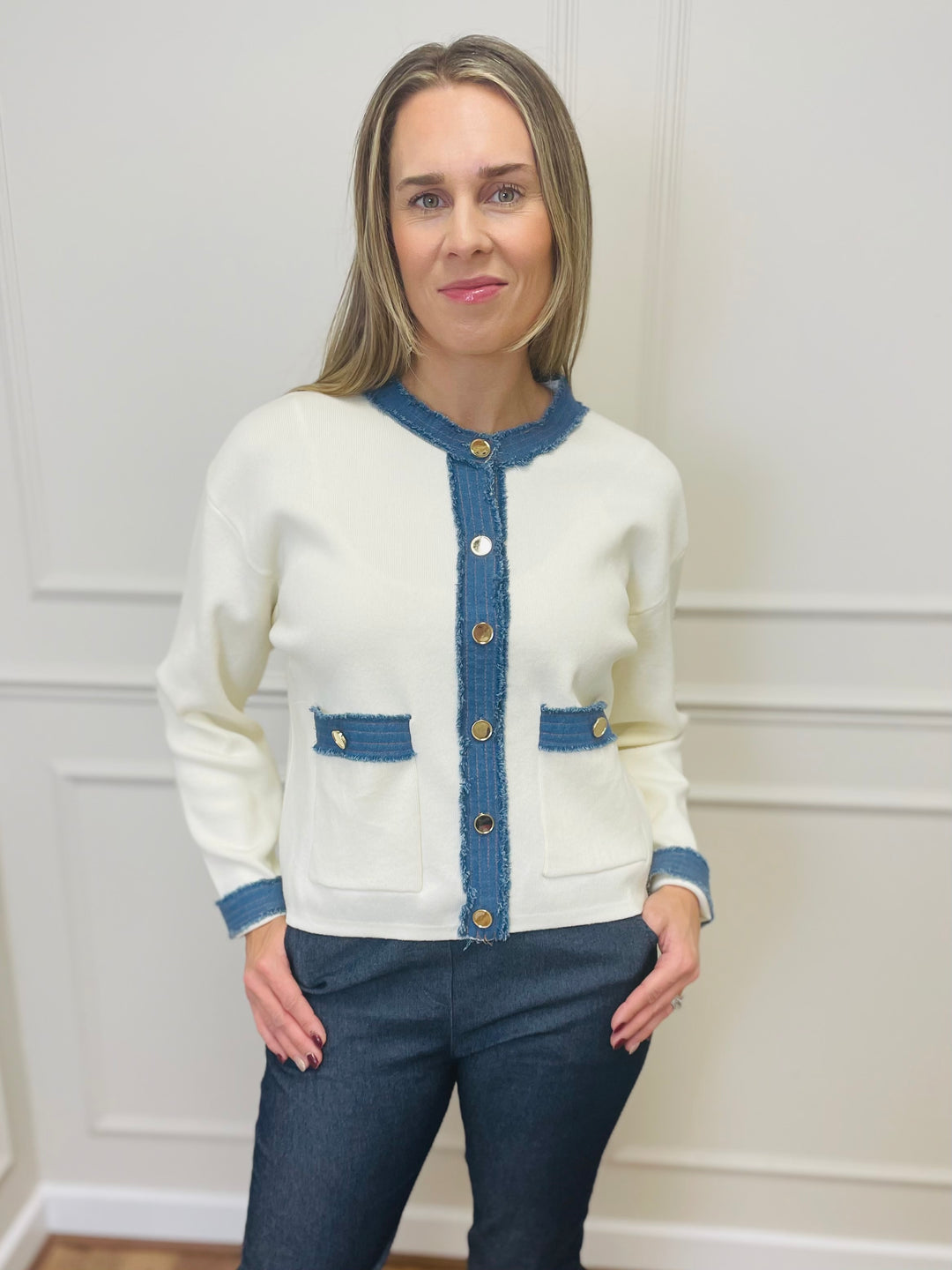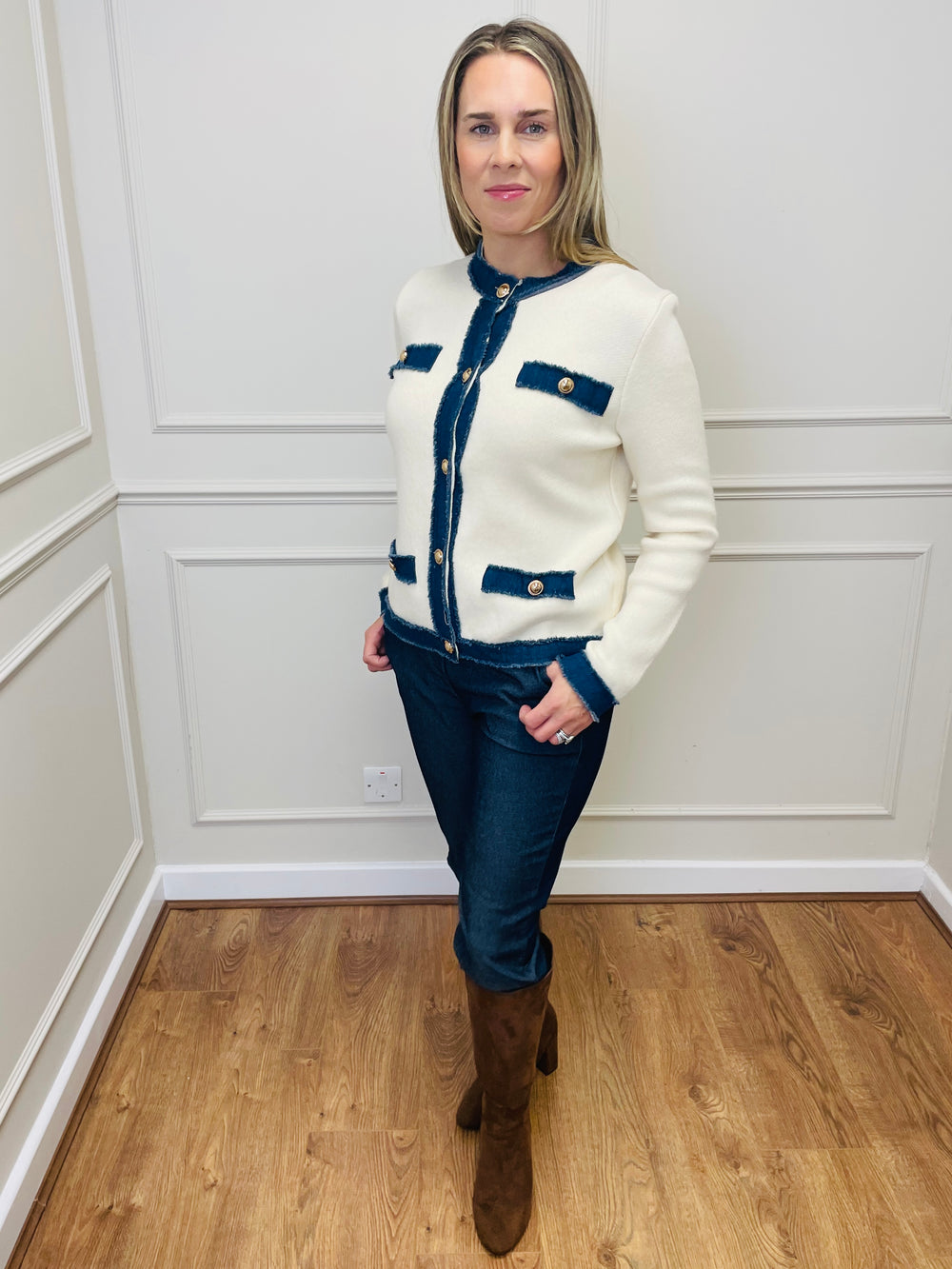 "COCO" Contrast Trim Jacket-Cream & Dark Denim