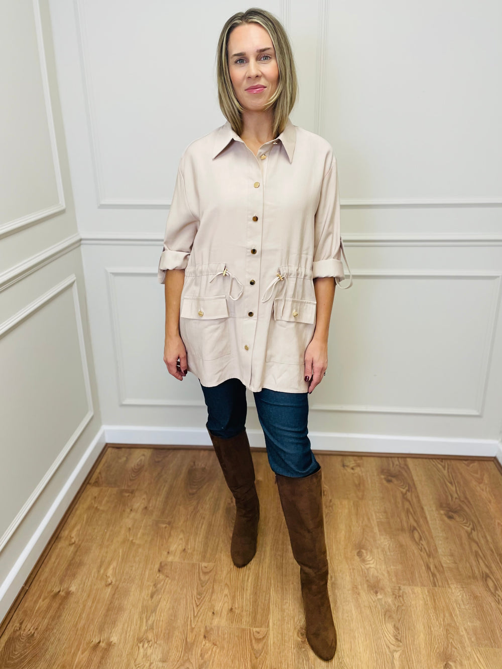 "COCO" Contrast Trim Jacket-Cream & Light Denim
