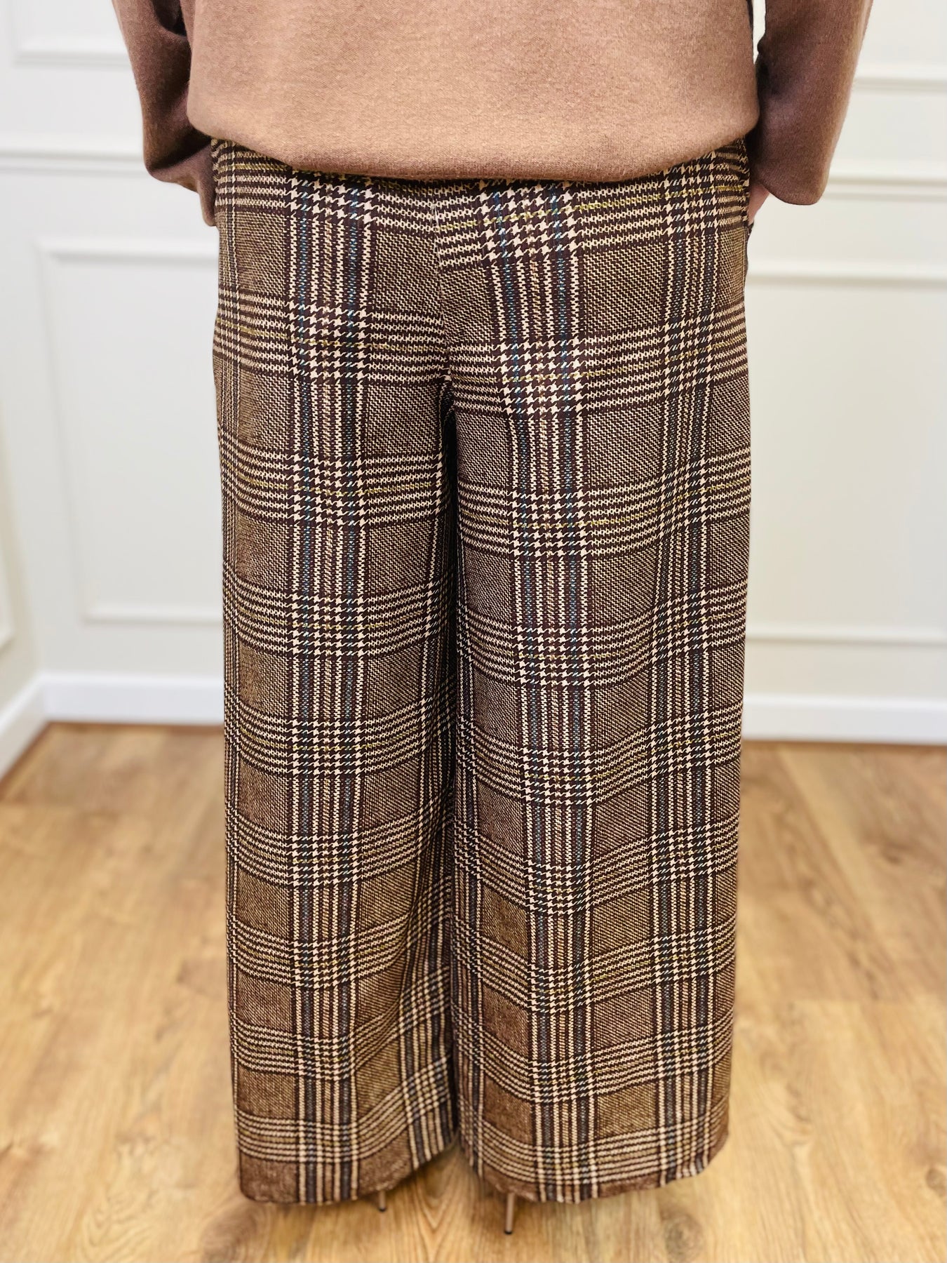 "ALANI" Check Print Trouser-Brown/Cream & Navy