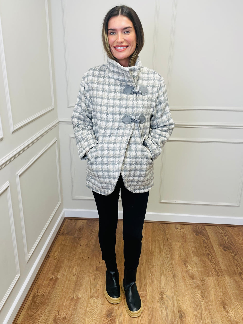 "SAMIRA" Houndstooth Coat-Grey & Cream