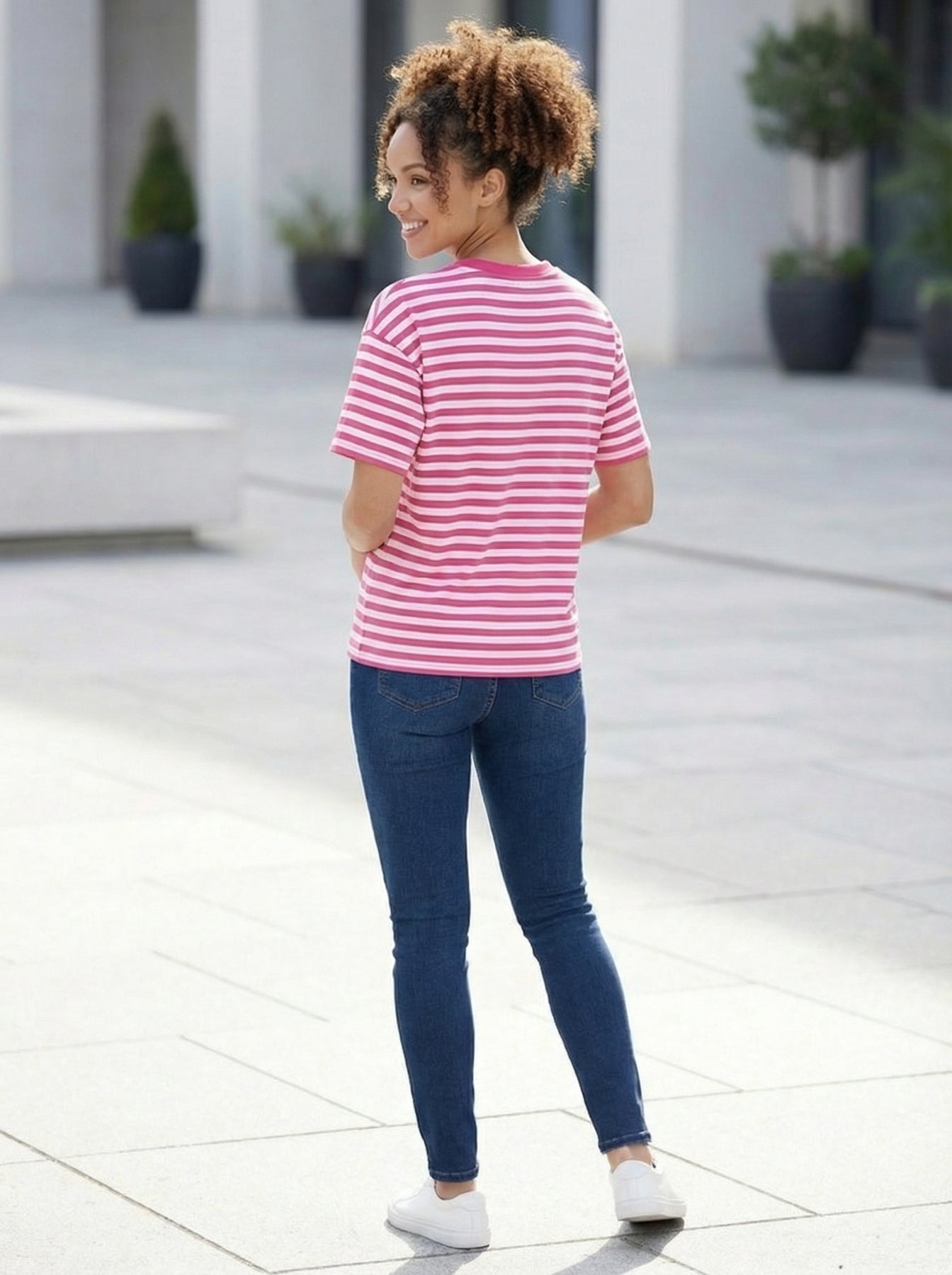 “BETHANY” Stripe Cotton Top - Cerise Pink