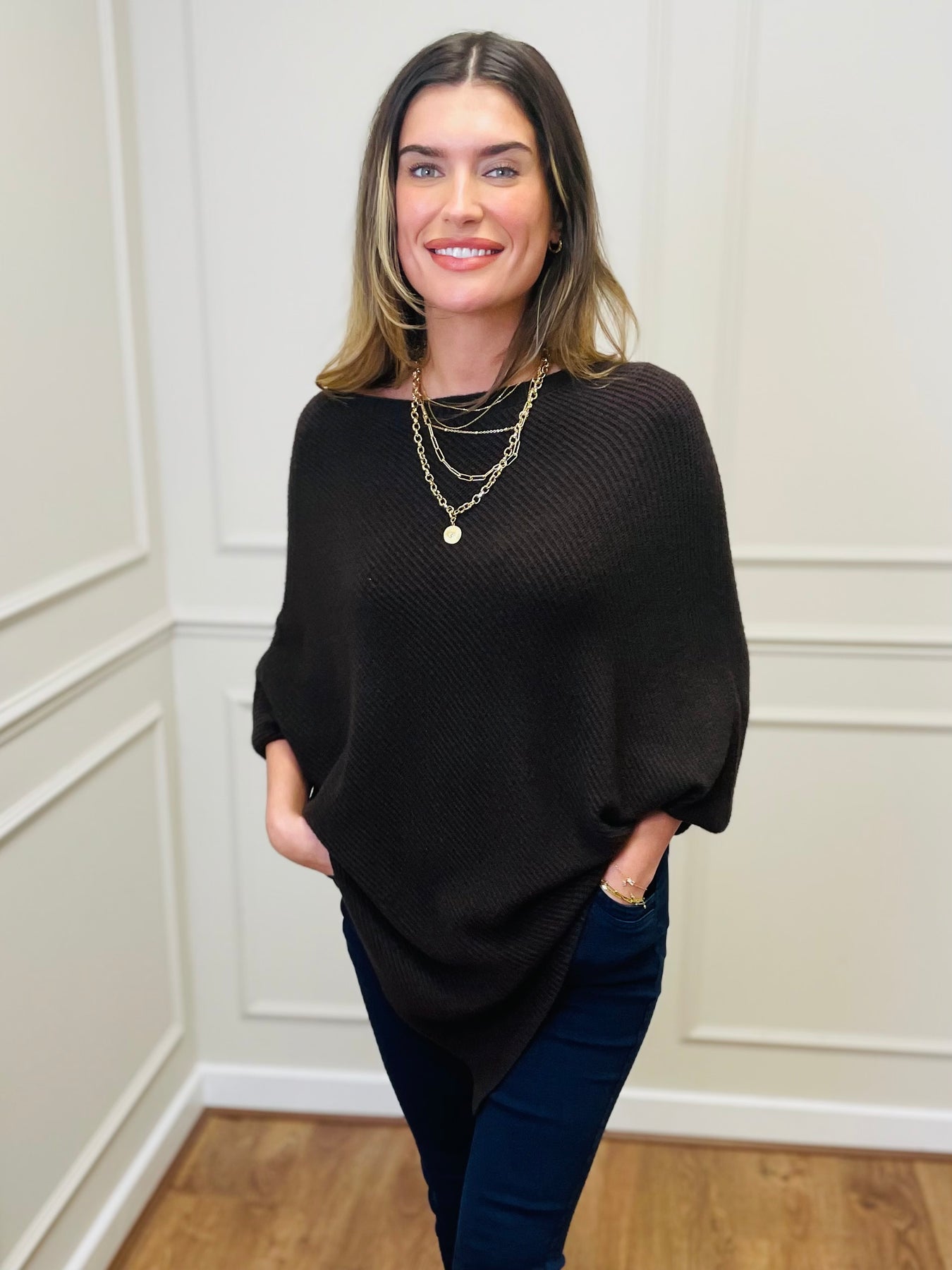 The Ella Poncho is the effortless, throw-on knit that instantly elevates any outfit. Designed with a chic asymmetric hem, relaxed drape, and soft ribbed texture, it flatters beautifully across sizes 10–18. The batwing-style sleeve shaping gives it movement without adding bulk, while the boat neckline keeps the whole look polished and elegant.