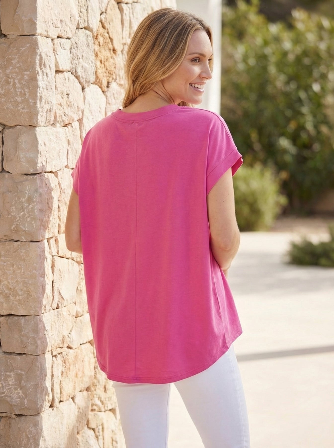 "JASMINE” Cap Sleeve T-Shirt - Cerise Pink