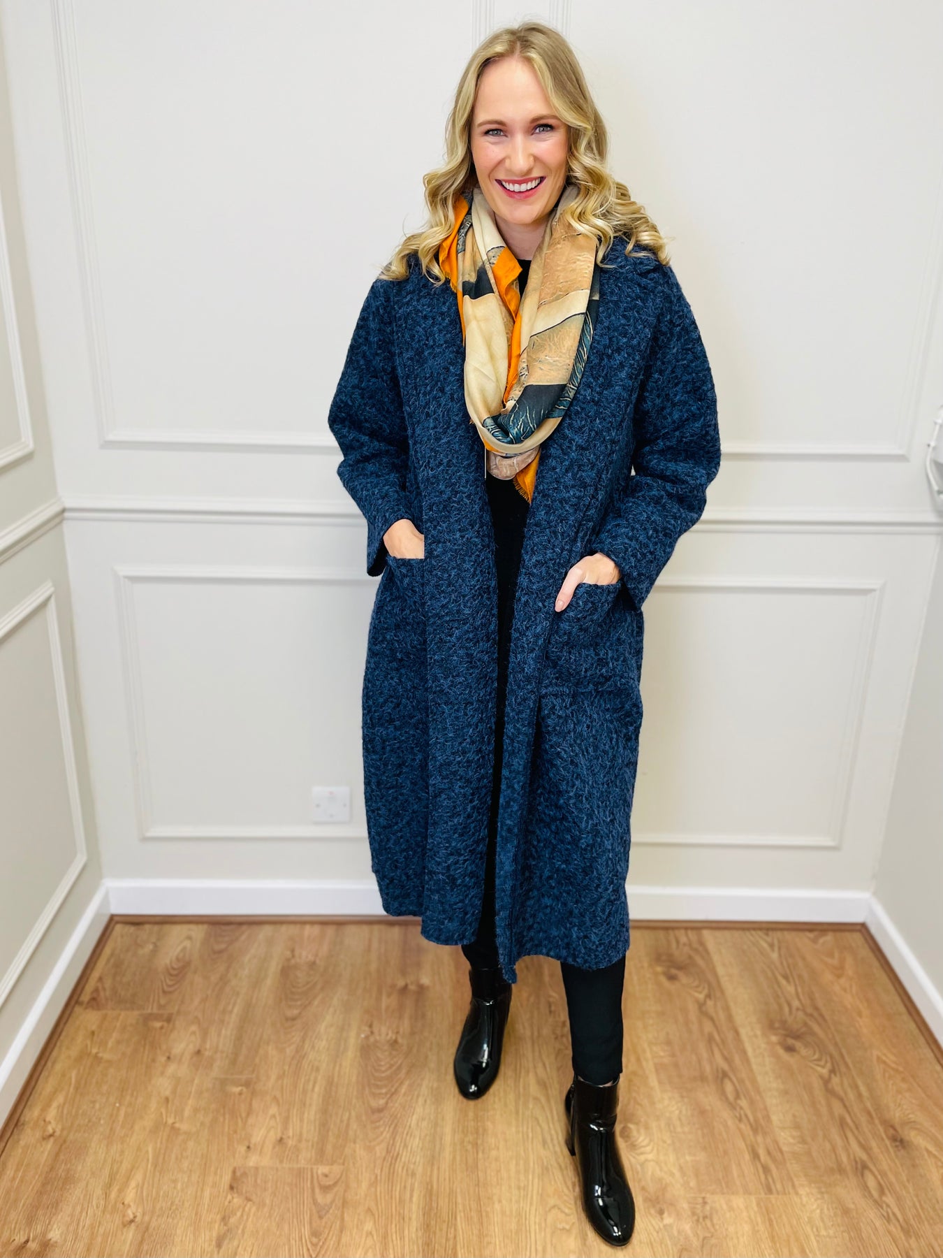This beautifully textured, longline coat combines timeless tailoring with a relaxed, effortless silhouette. Designed for layering, it drapes beautifully over everything from chunky knits to sleek evening looks.