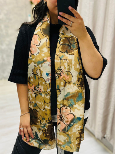 No.118 Artistic Print Scarf-Grey & Multicolour