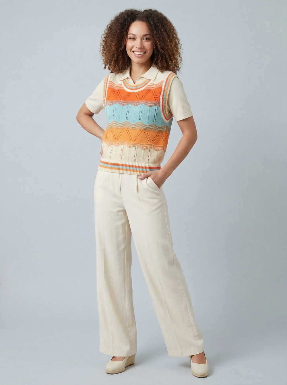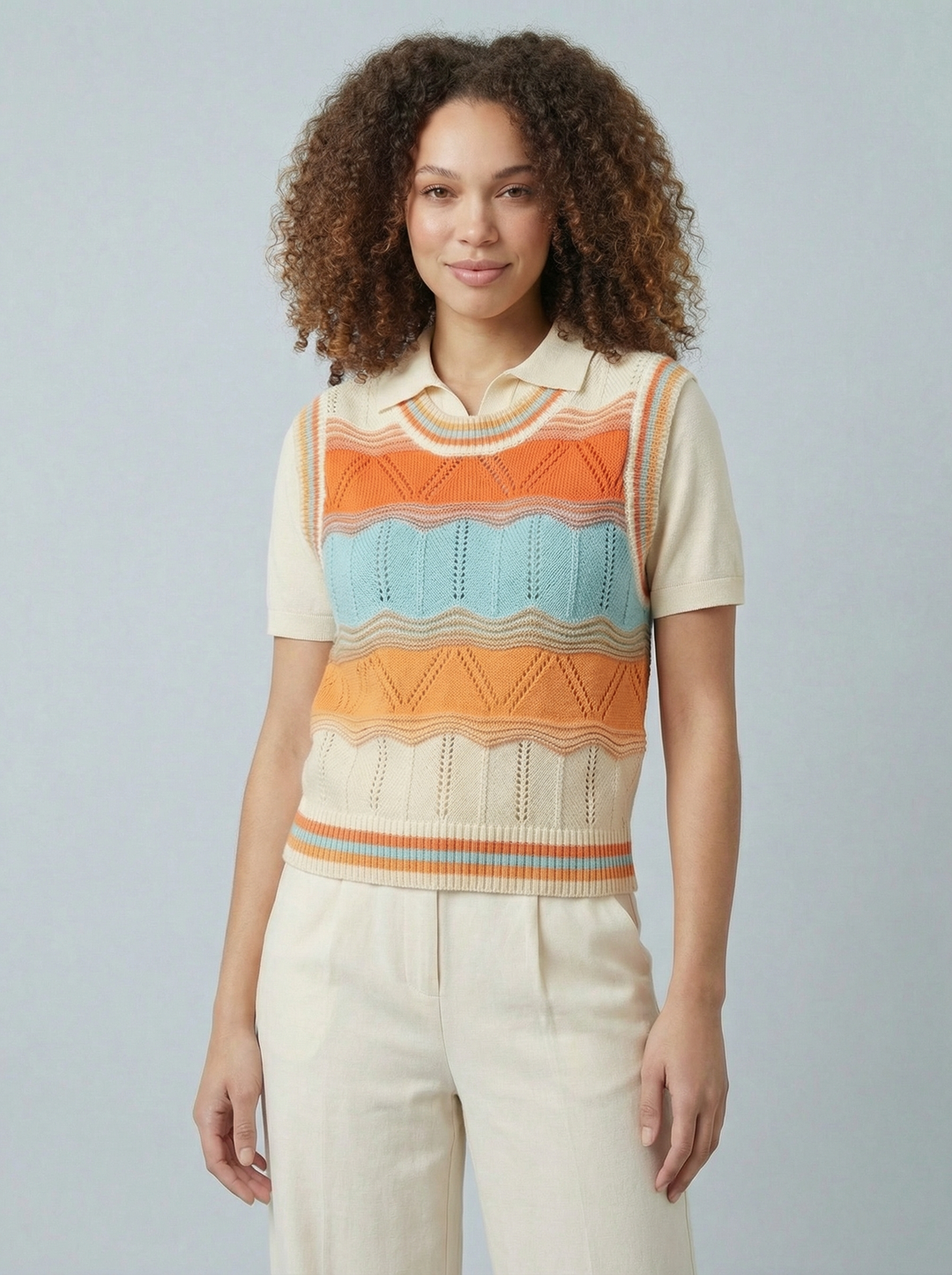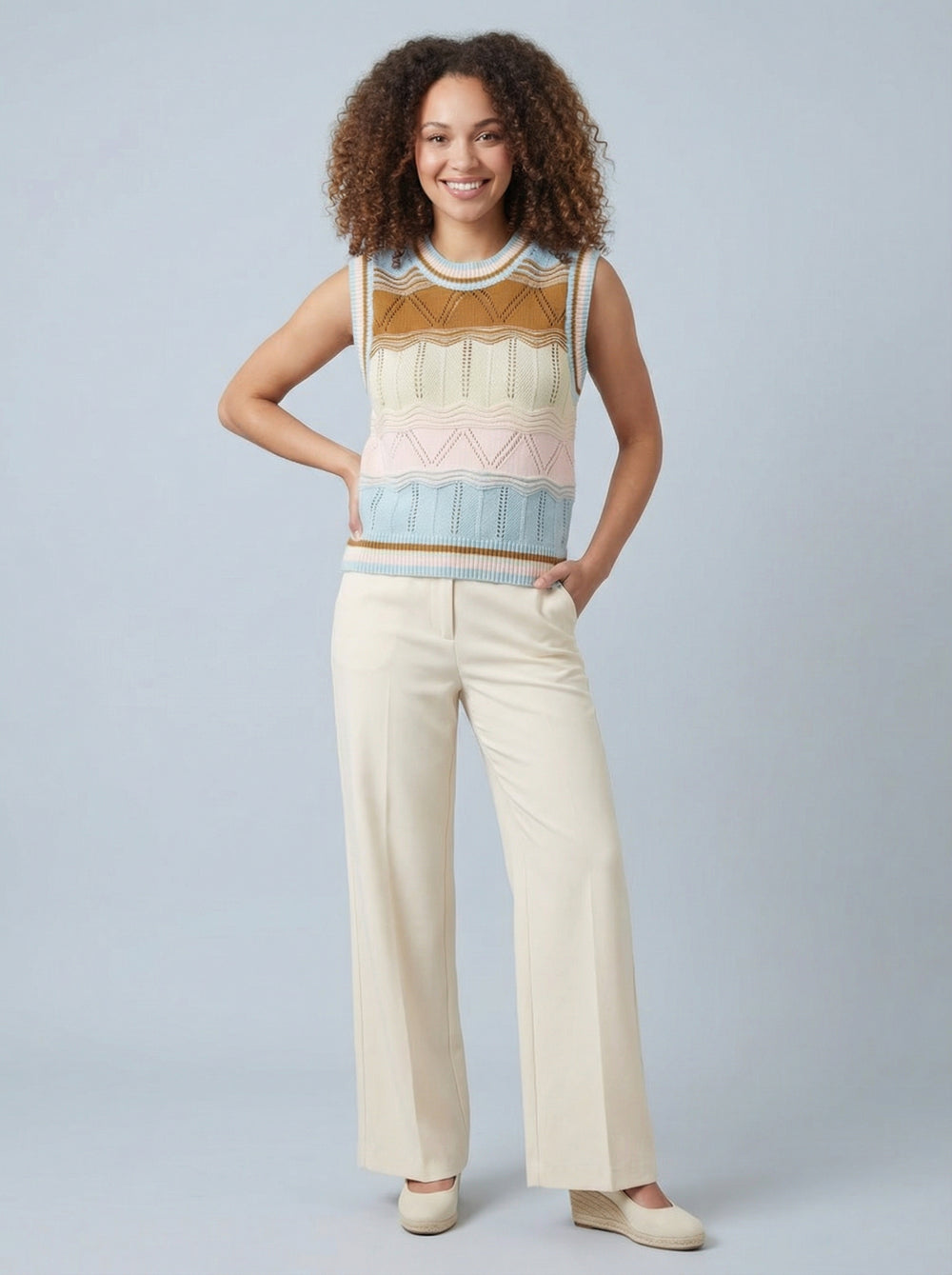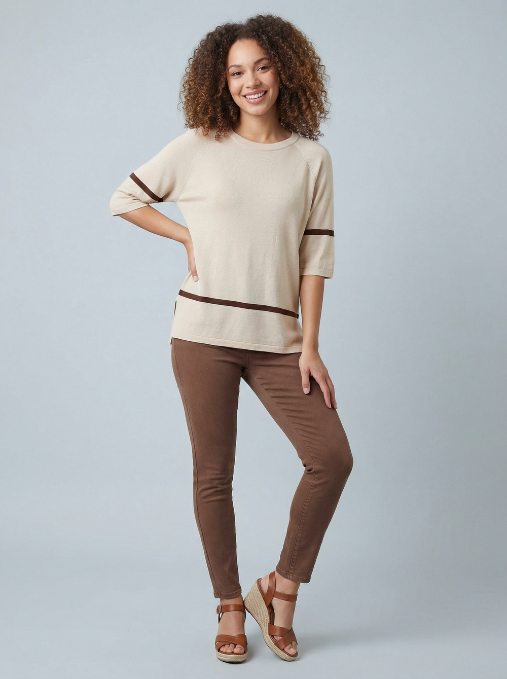 "LYRA” Fine Knit Top - Cream / Brown
