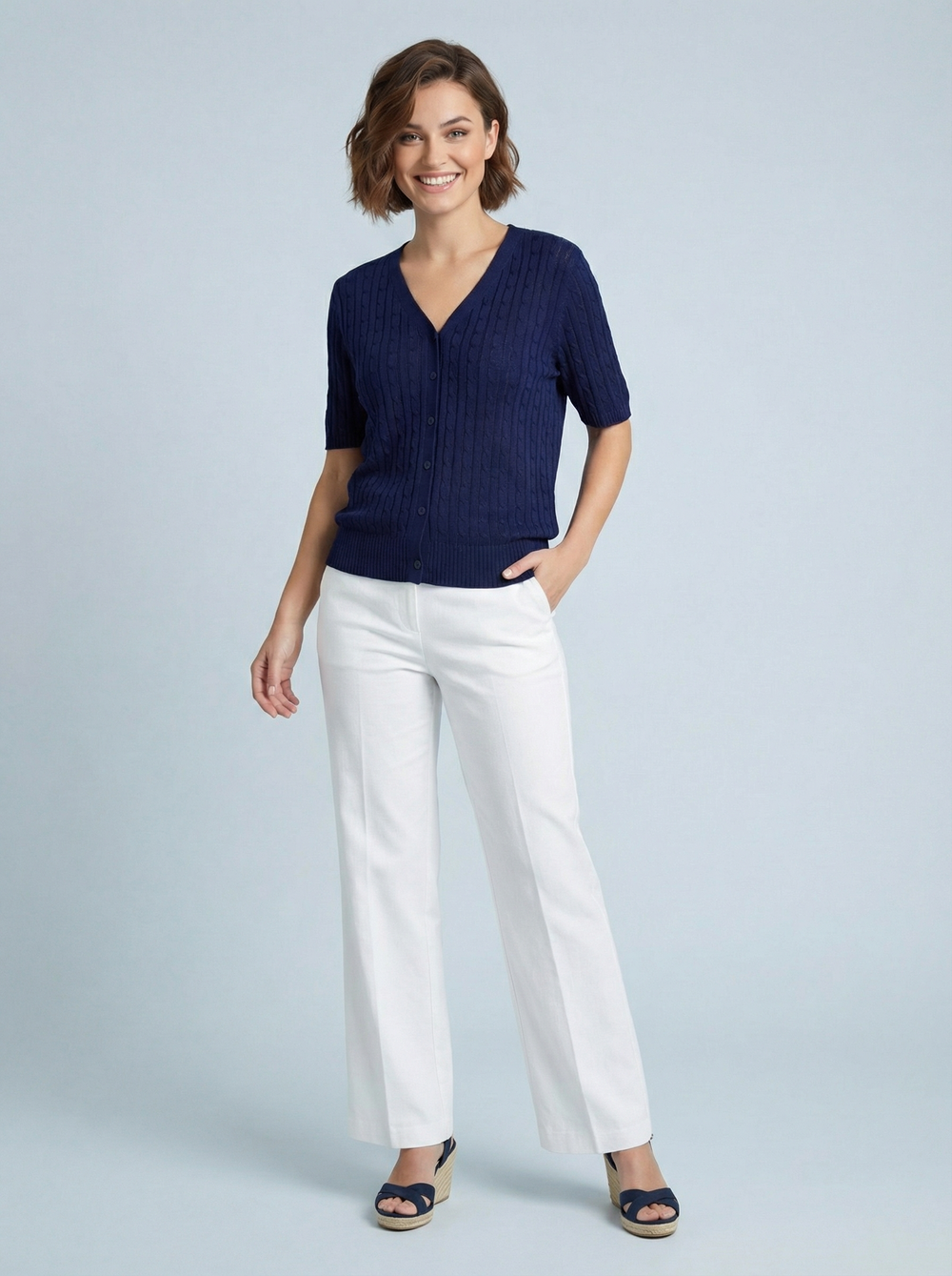 "LARA” Fine Knit Top / Cardigan - Navy