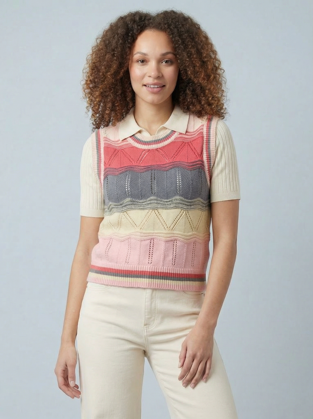 "DARCIE” Soft Knit Top - Coral/Cream