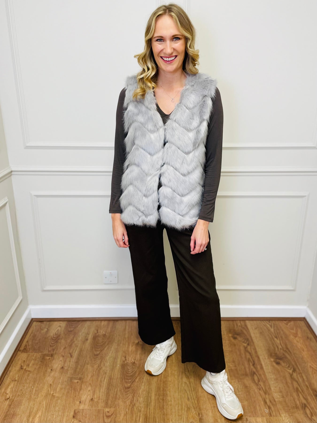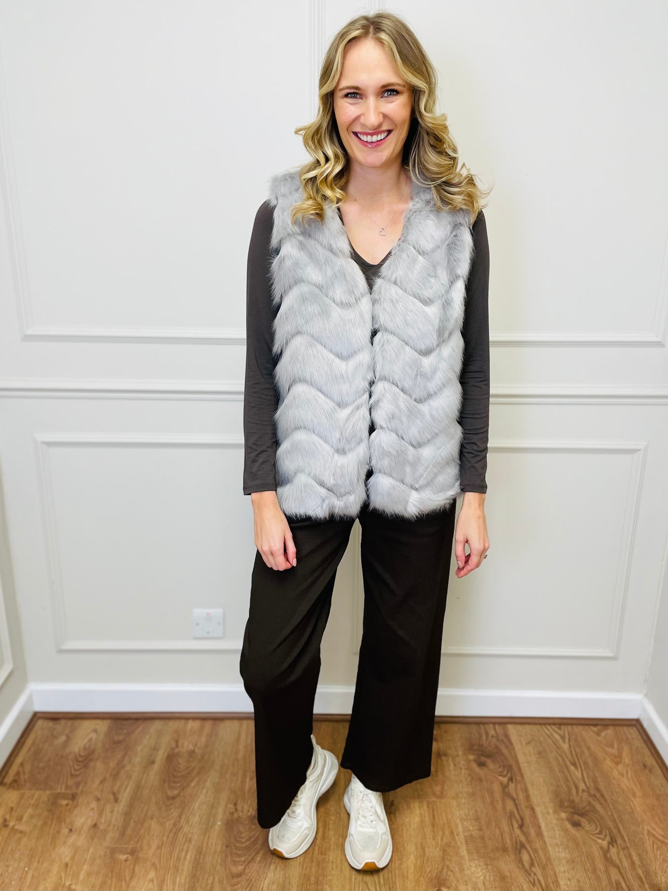 "CLARISSA" Faux Fur Waistcoat-Grey