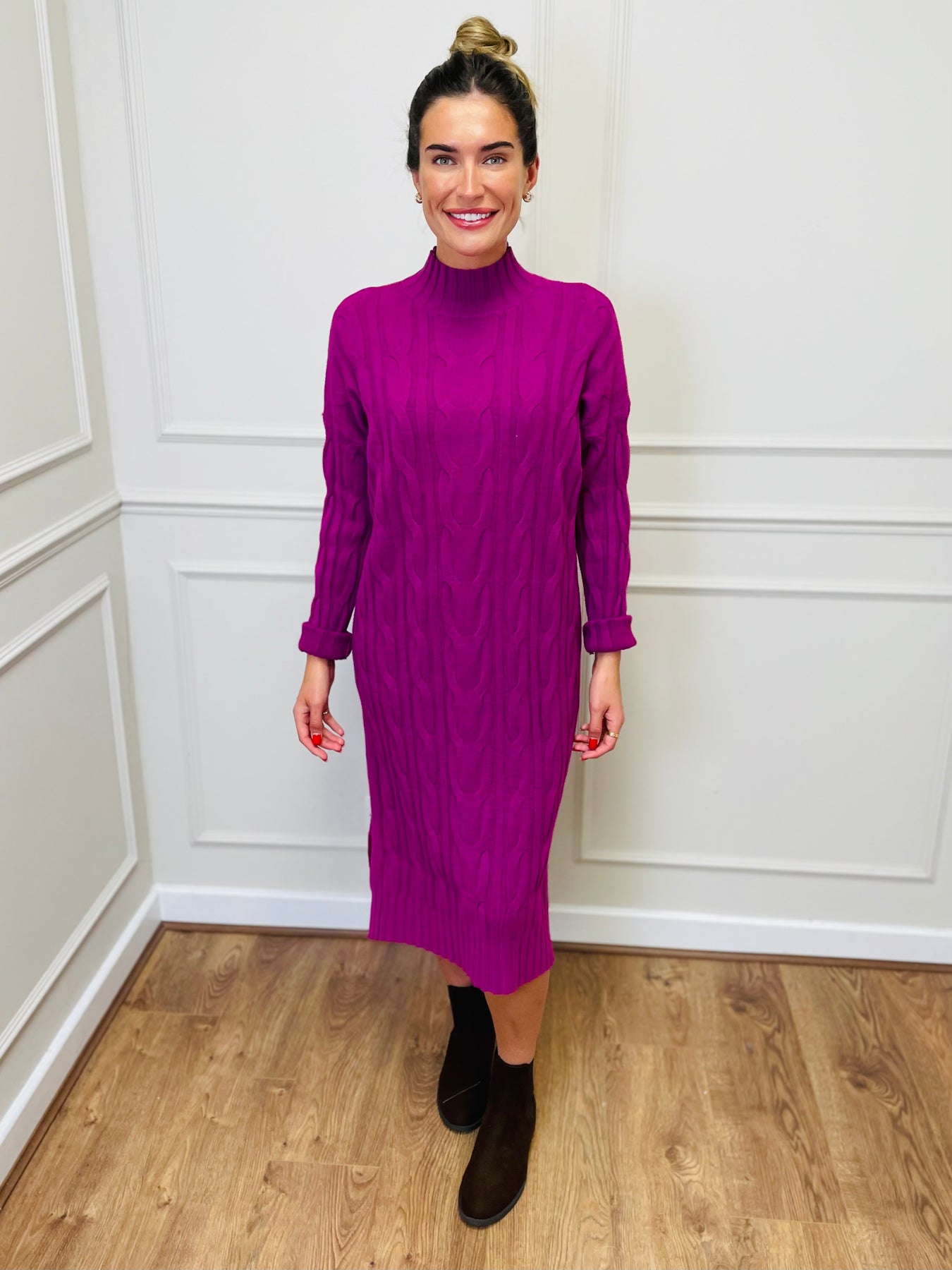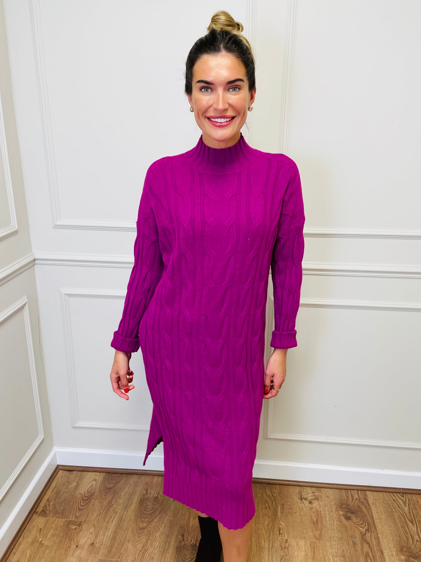 "ELY" Cable Knit Midi Dress-Magenta