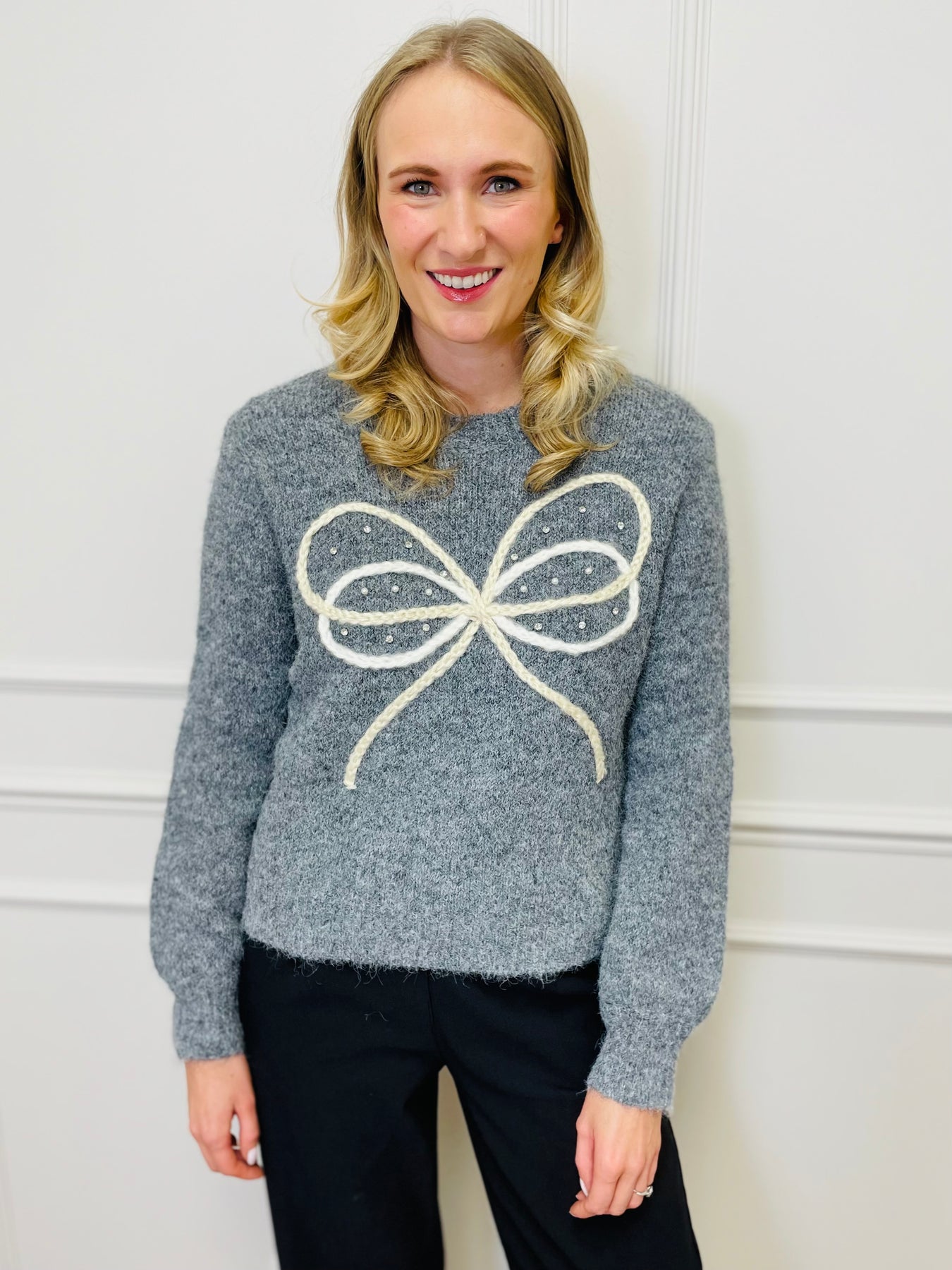 "HARLEY" Bow Jumper-Grey