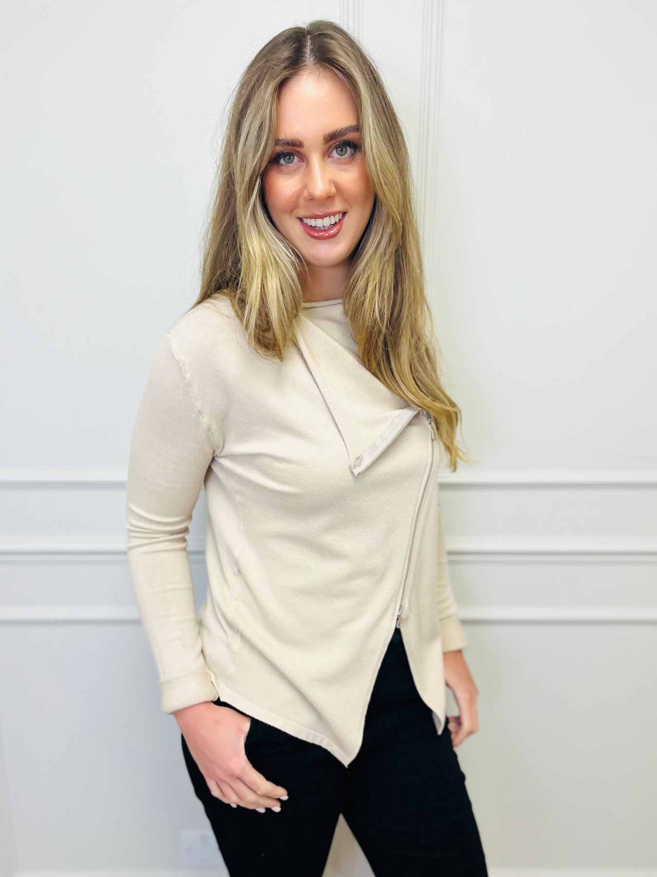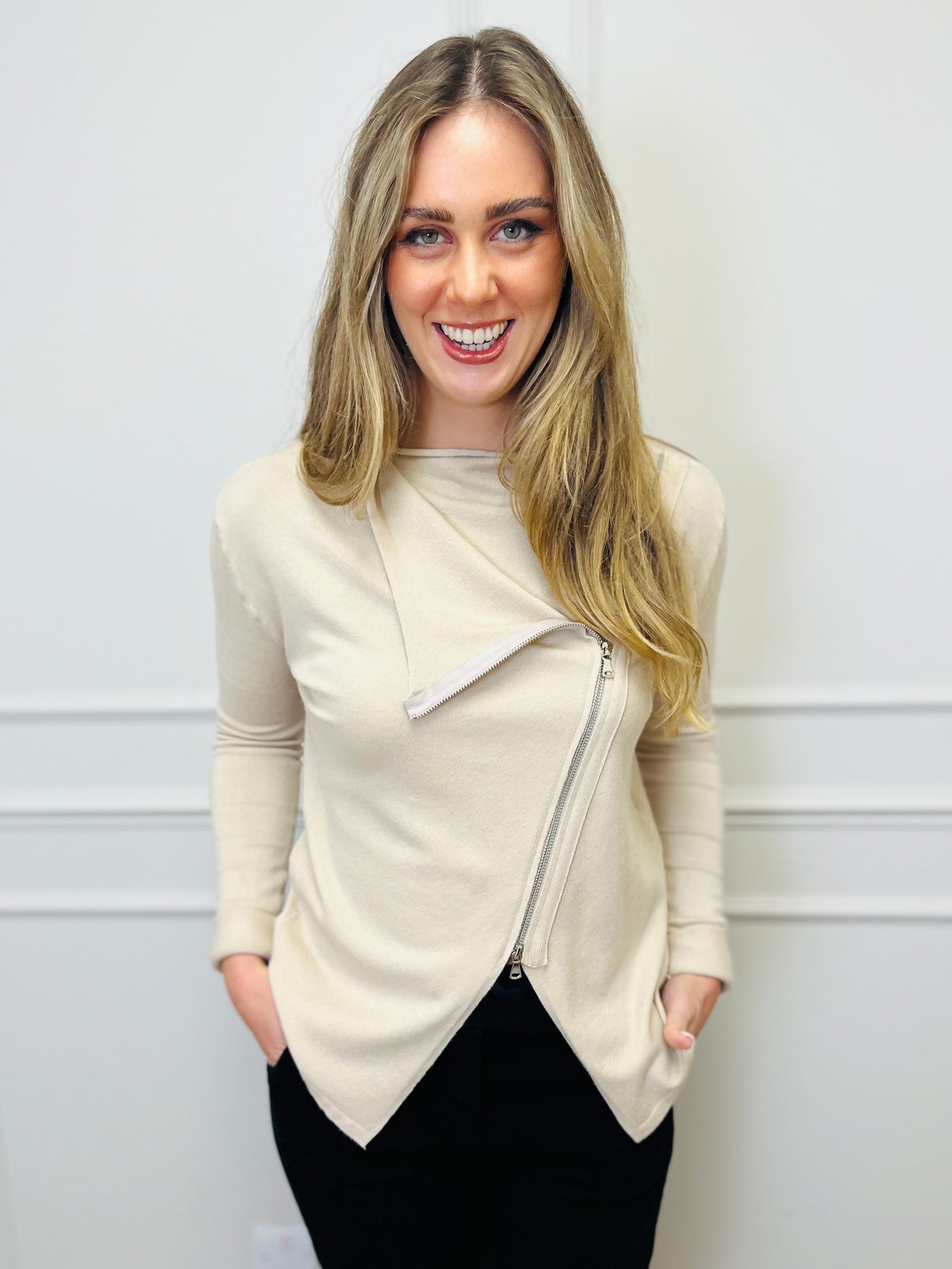 With its clever cut and standout zip detail, this top gives you the polish of tailoring with the comfort of knitwear. Available in a range of bold and neutral colours, it’s a piece that transitions seamlessly from casual to elevated styling.