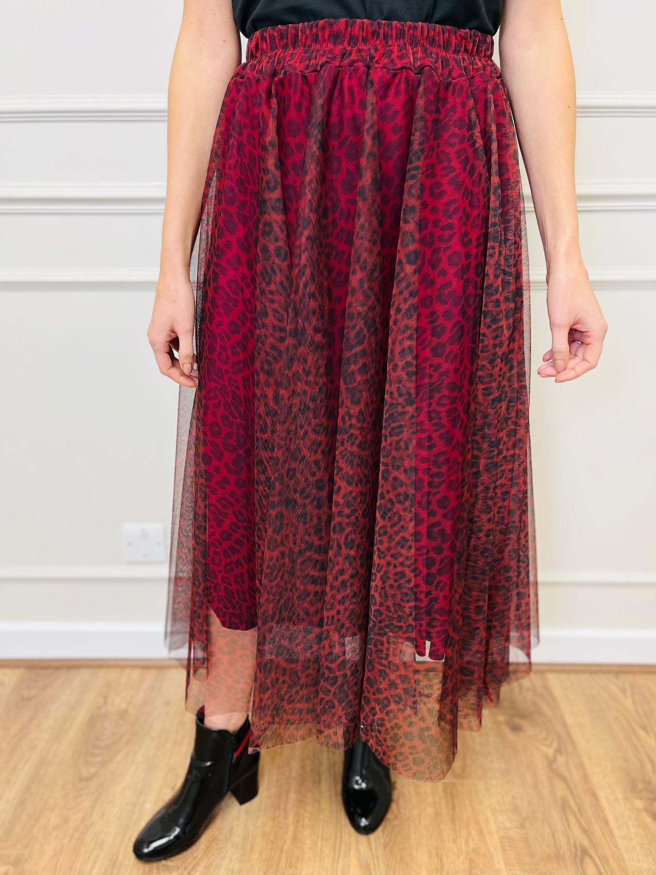 "IZZY" Animal Print Tulle Skirt-Red & Black