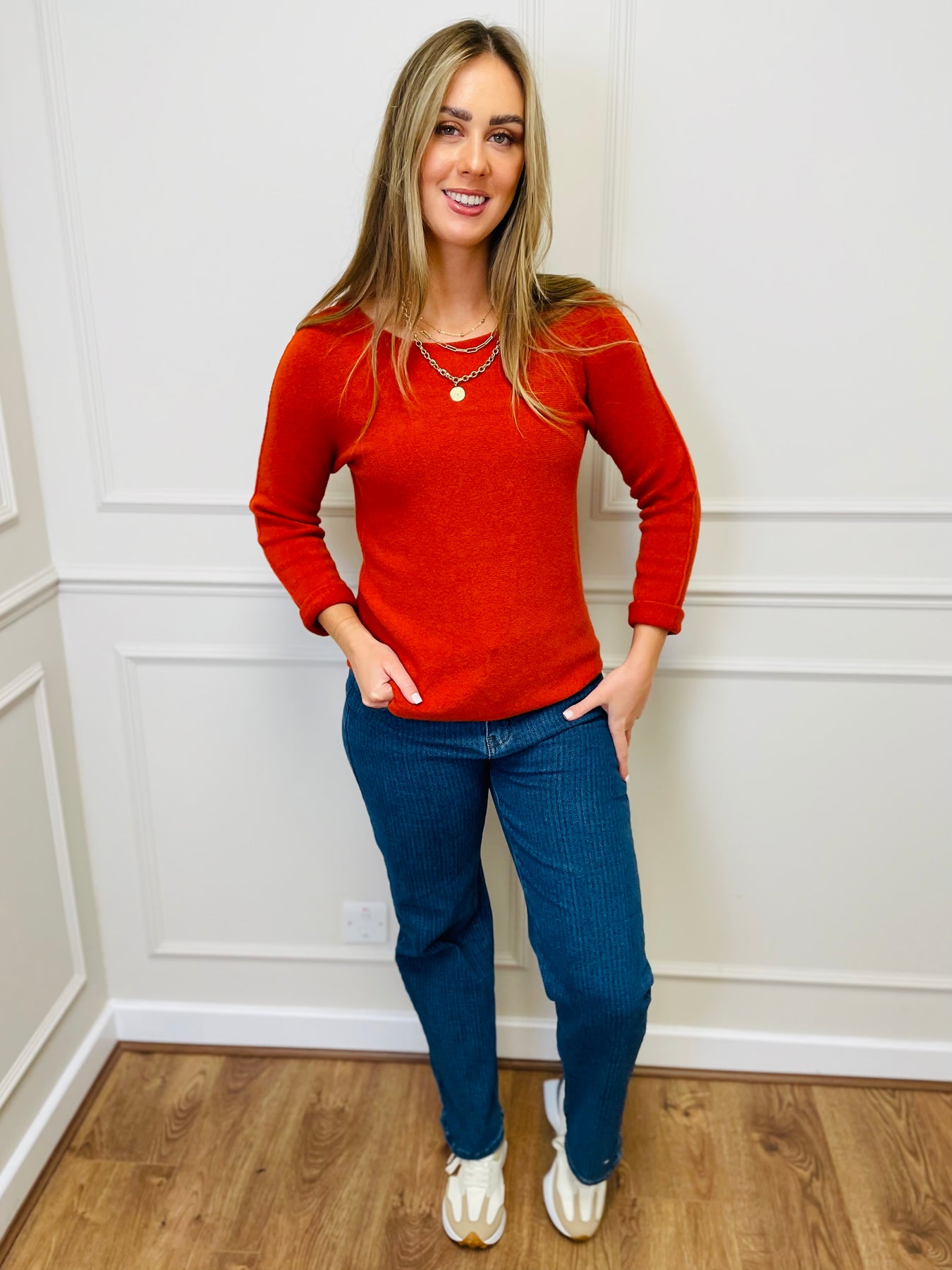 "MAGNOLIA" Fine Knit Jumper-Rust Orange