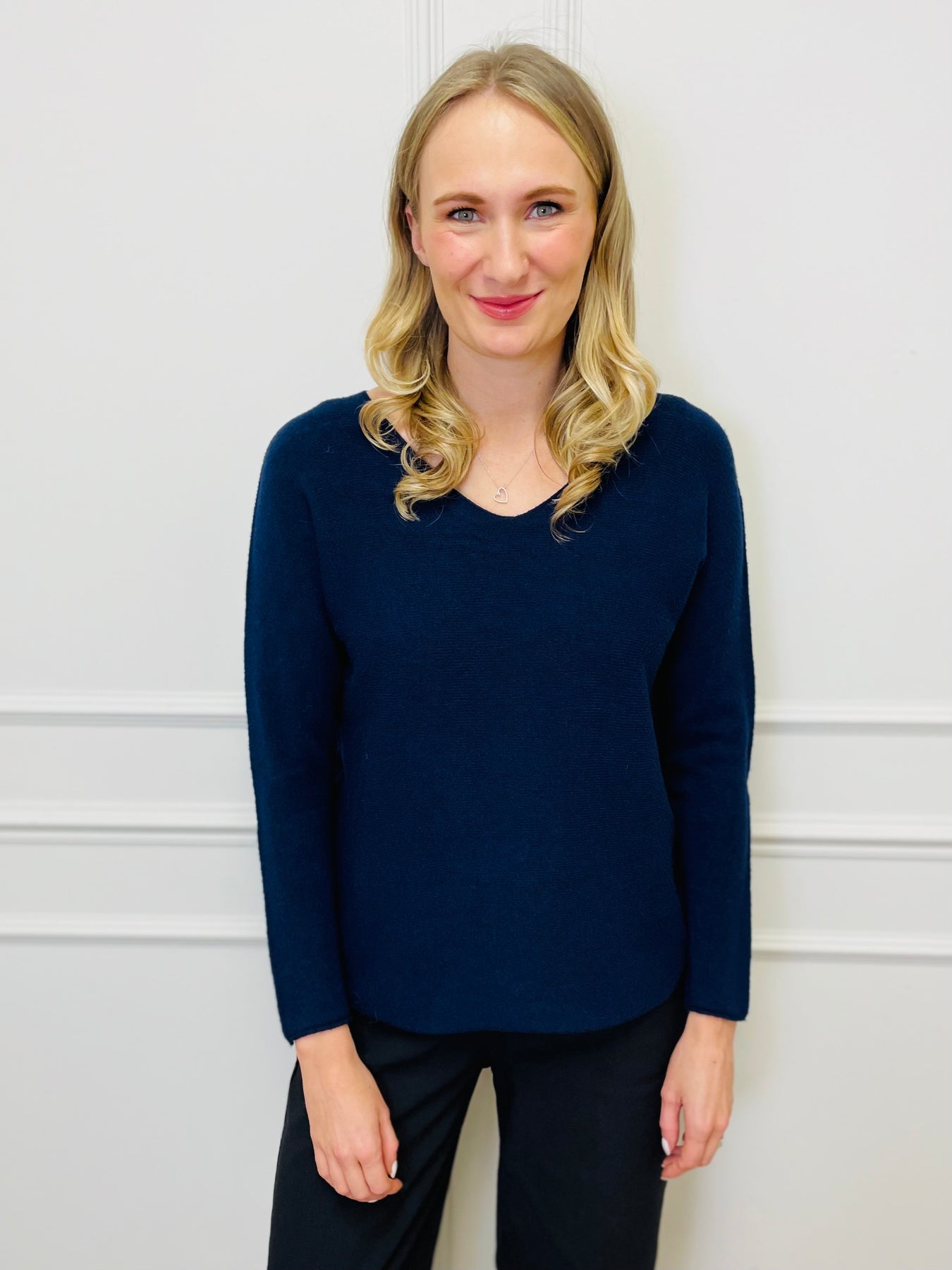 "MAGNOLIA" Fine Knit Jumper-Navy