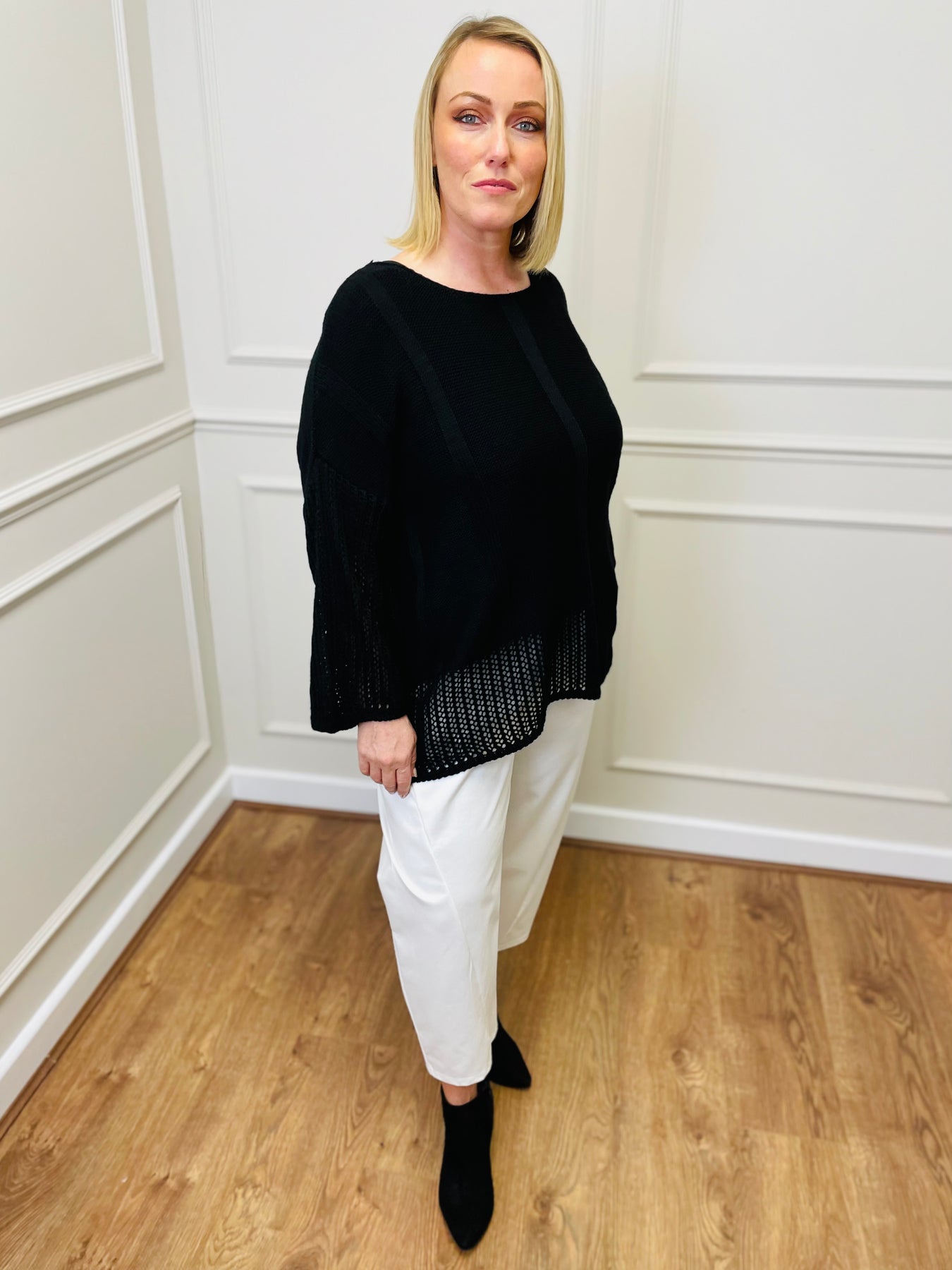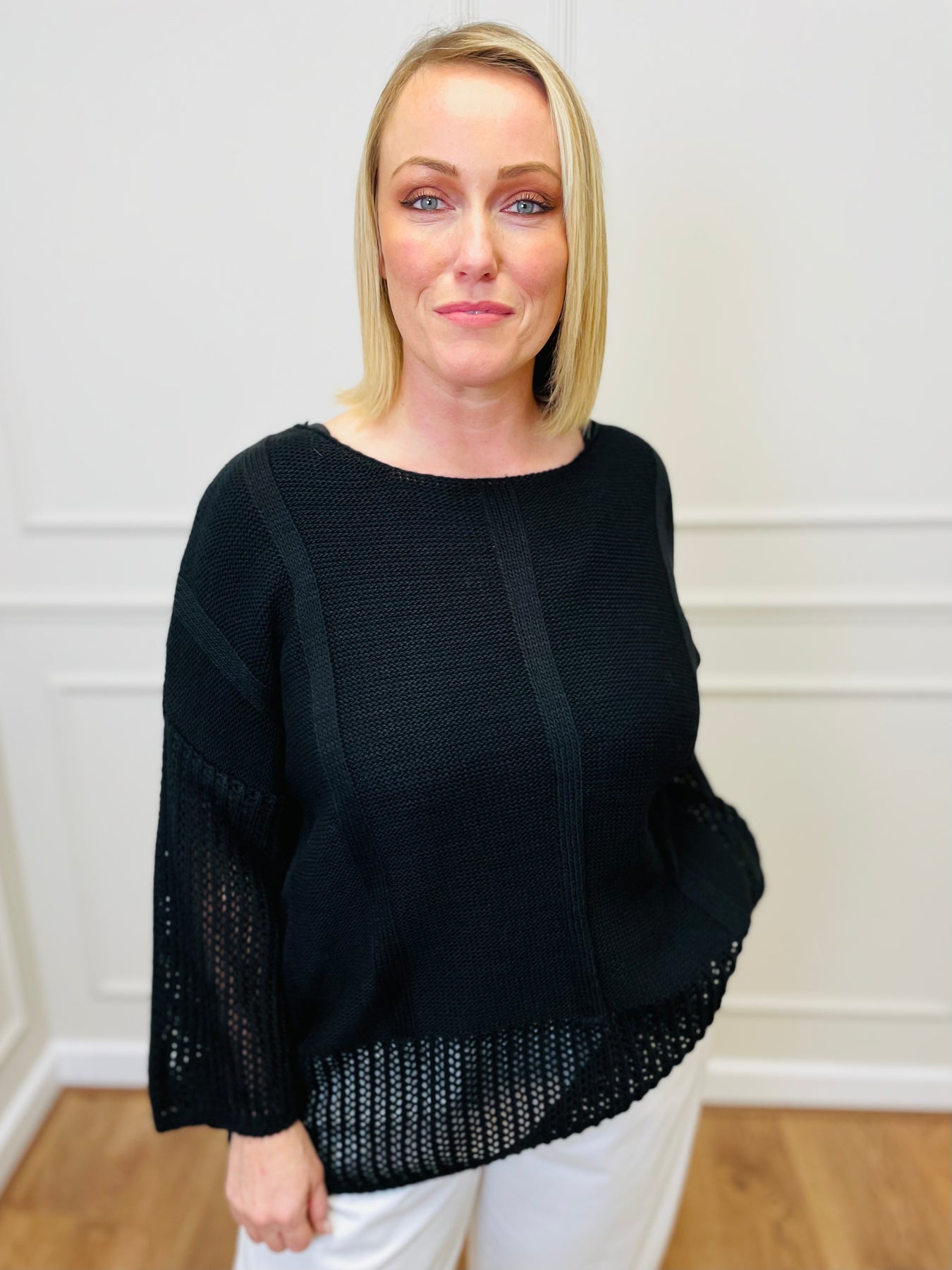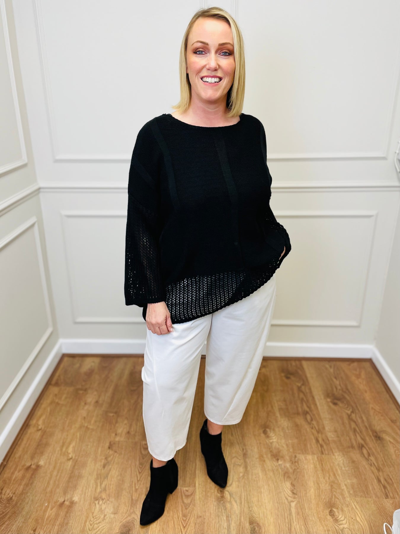 The Salma Jumper is that timeless knit you’ll reach for again and again — blending comfort with chic, understated texture. Its airy open-knit panels add interest and breathability, while the relaxed silhouette makes it an easy piece for layering all year round.