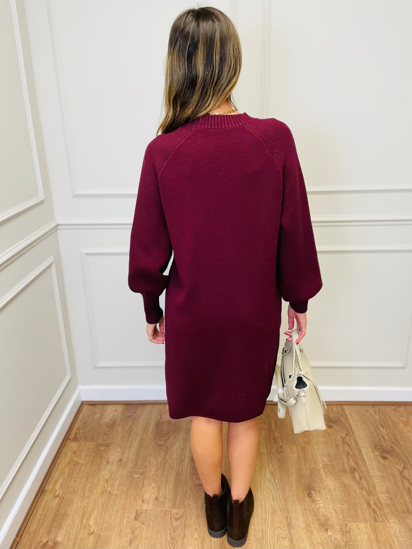 "TAYLOR" Pocket Knit Midi Dress-Burgundy