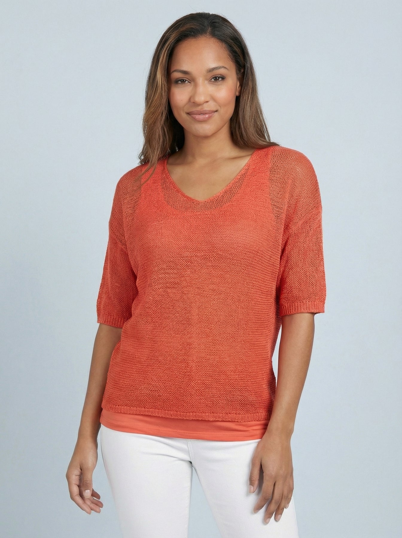 “TIFFANY” Button Back Fine Knit Top - Coral