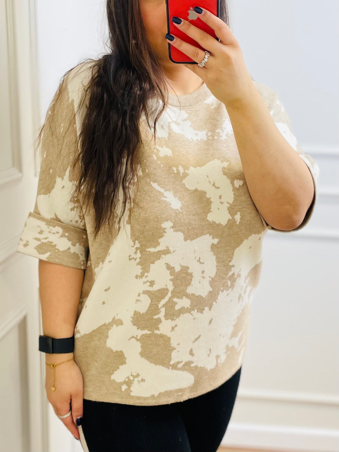 "ALICE” Short Sleeve Fine Knit-Mocha