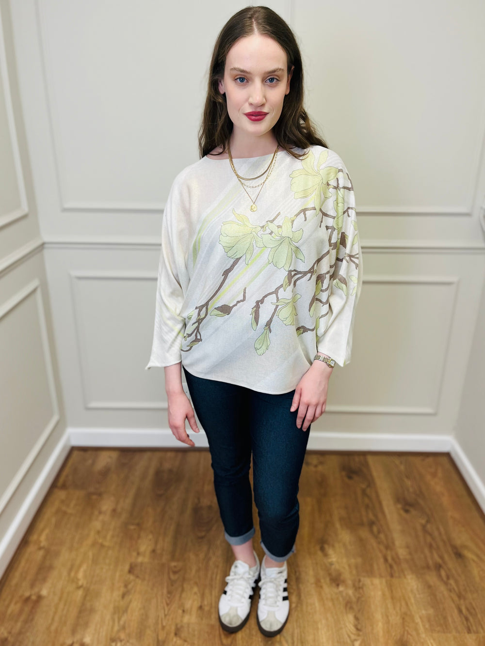 "AUTUMN" Floral Print Fine Knit-Cream & Mocha