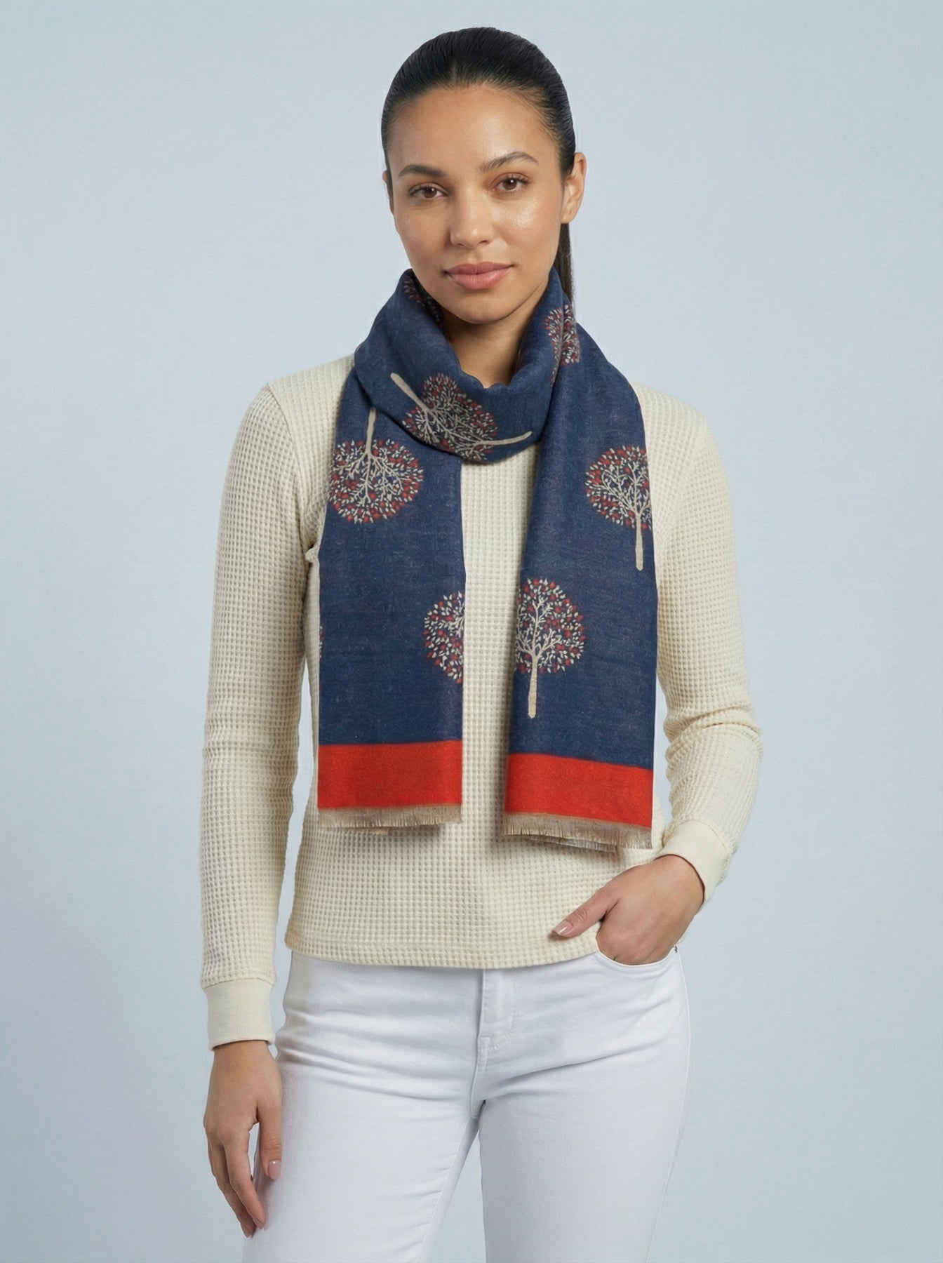 No.113 Tree Of Life Print Scarf-Navy