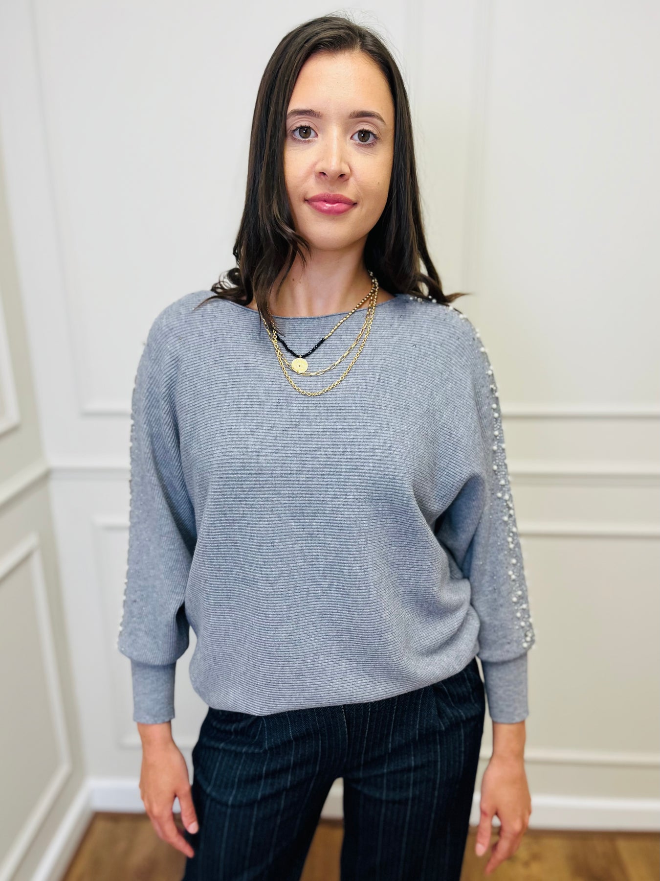 Effortlessly elegant with a touch of luxury — the Maya Jumper is a timeless piece designed to elevate your everyday style. With its soft textured knit and delicate pearl embellishments along the sleeves, this jumper blends comfort with sophistication in the most effortless way.
