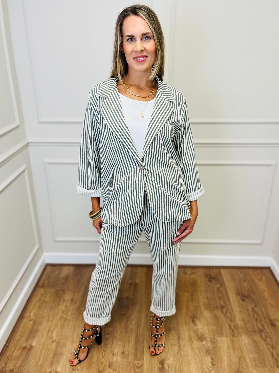 "ANNA" Printed Jersey Top-Green & Tan