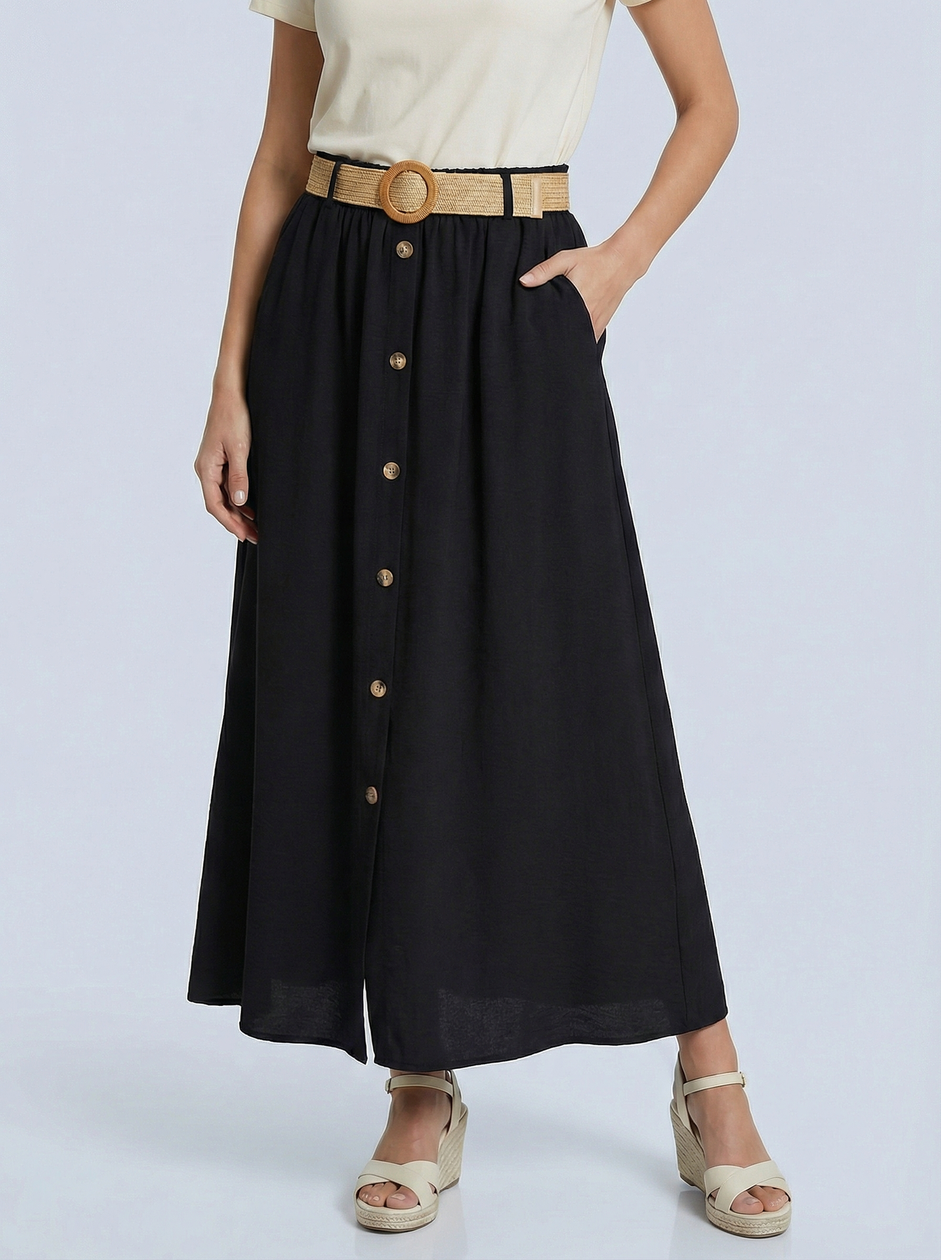 “BETH” Skirt With Button Detailing - Black