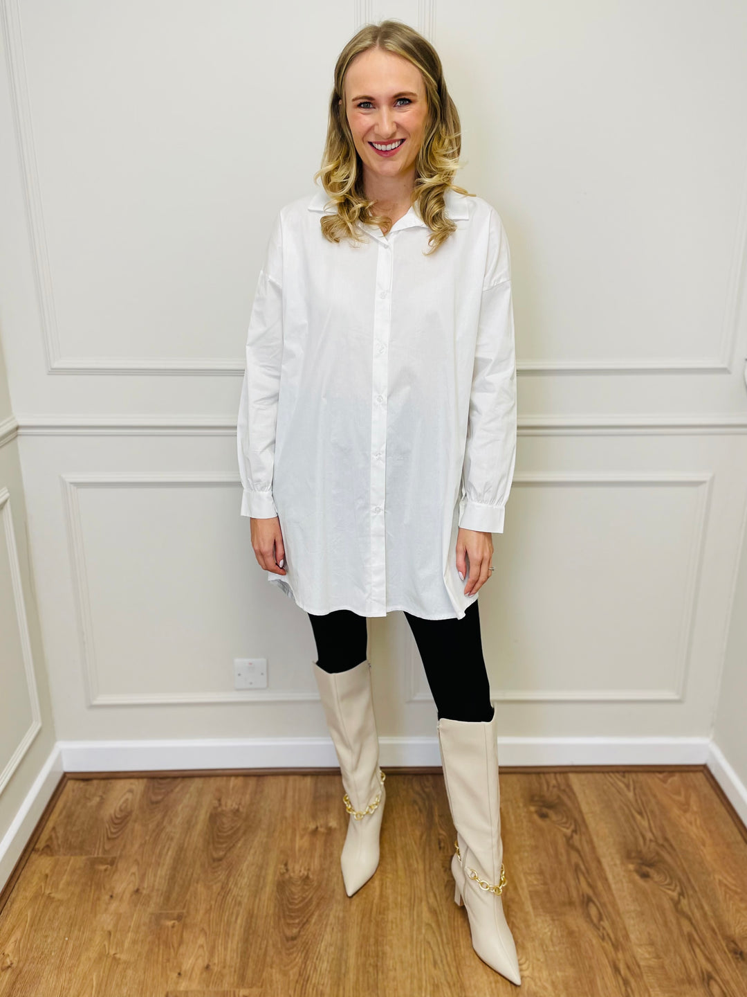 "NICOLE” Longline Shirt-White