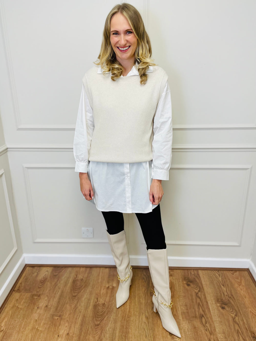 "CARLY" Vest Blouse-Cream