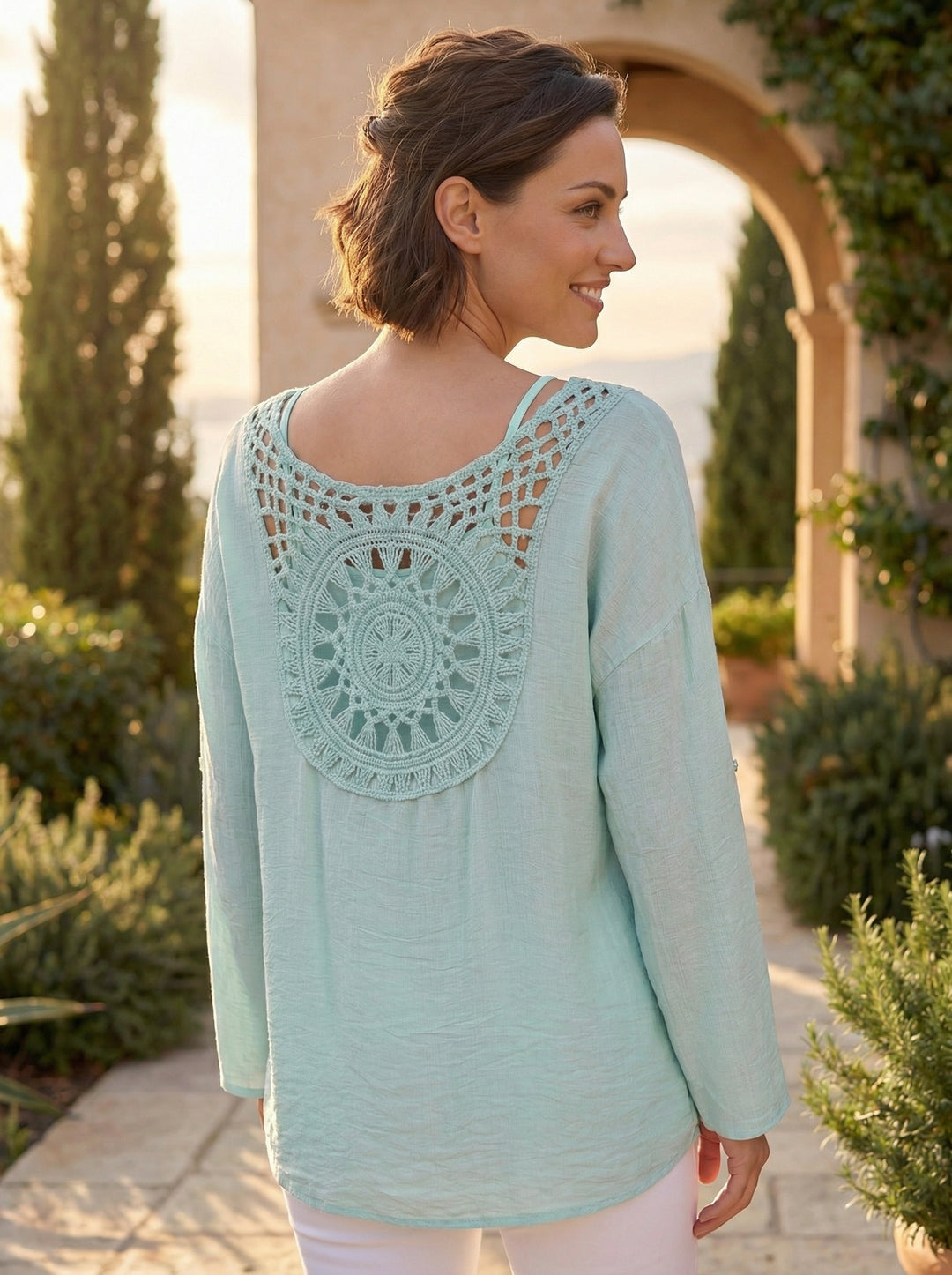 “LOTTIE” V- Neck Crochet Back Blouse - Mint