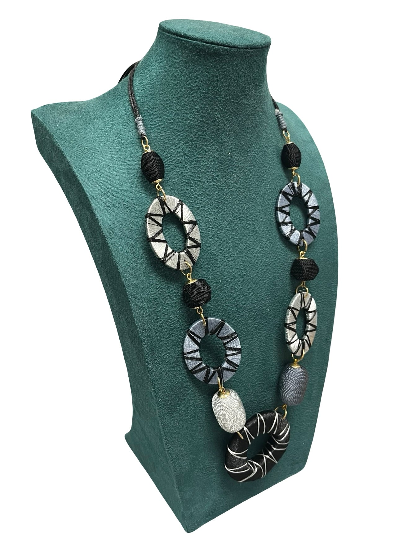 Long Statement Necklace-Black & Silver