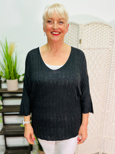 "ELOISE" Fine Knit Top-Black
