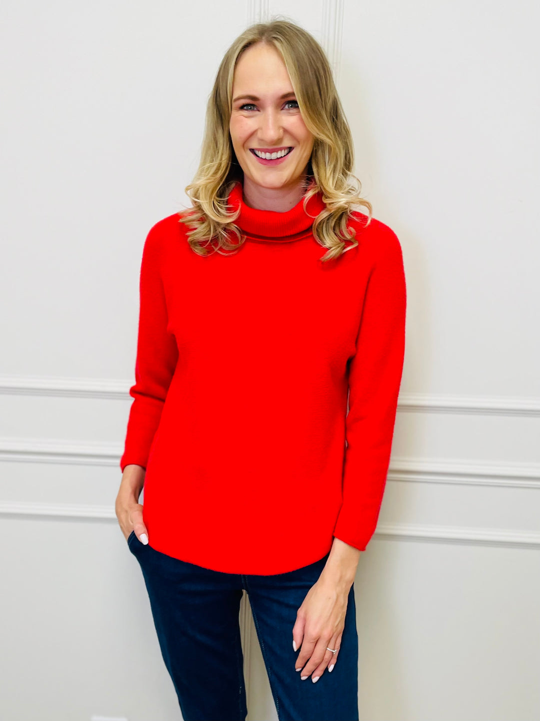 "BELINDA" Cable Knit Roll Neck Dress-Red