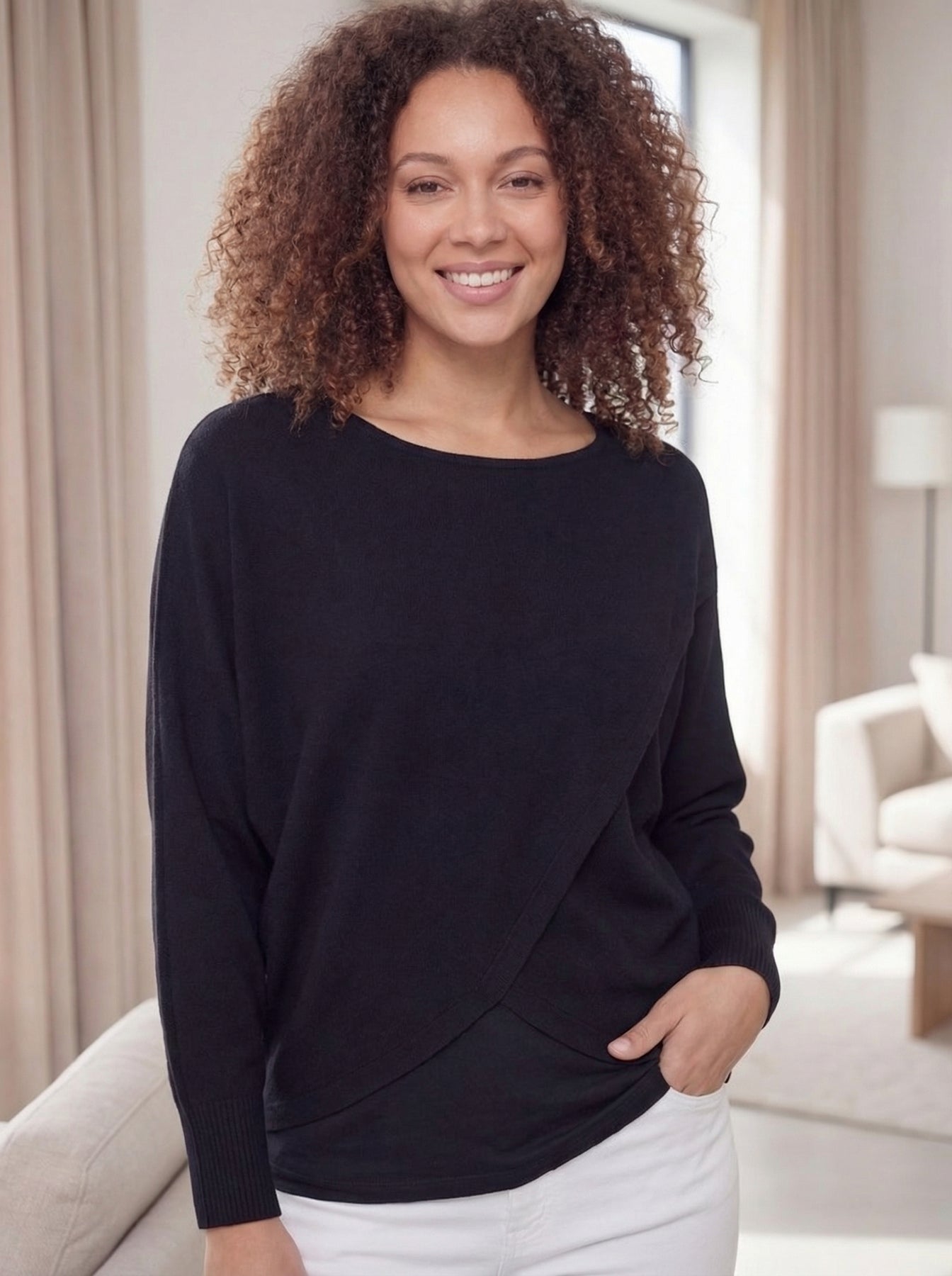 “KINSLEY” Crossver Soft Knit Jumper - Black