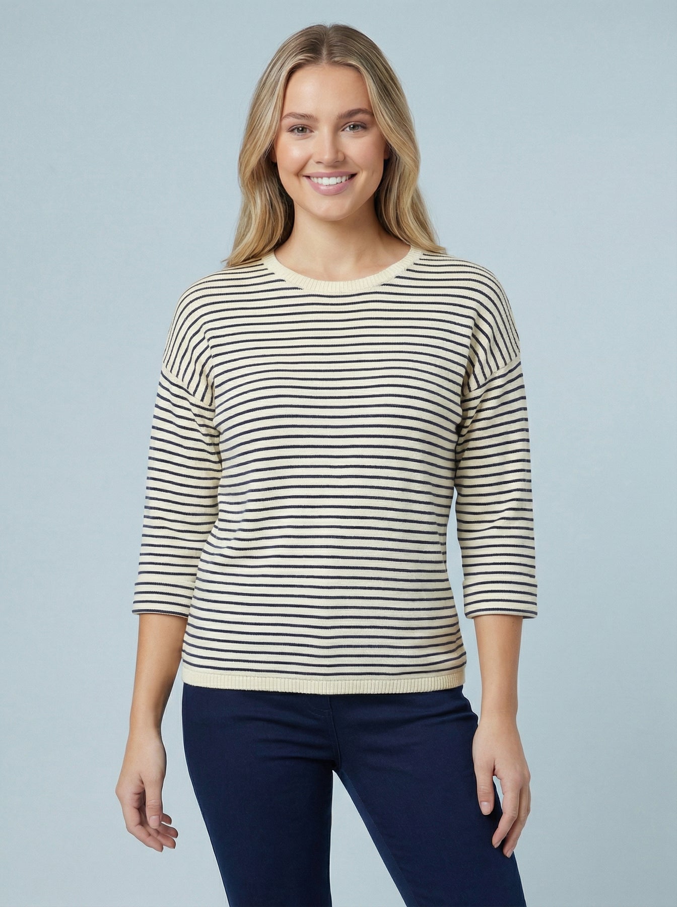 "ELIZA” Nautical Stripe Fine Knit Top - Cream/ Navy