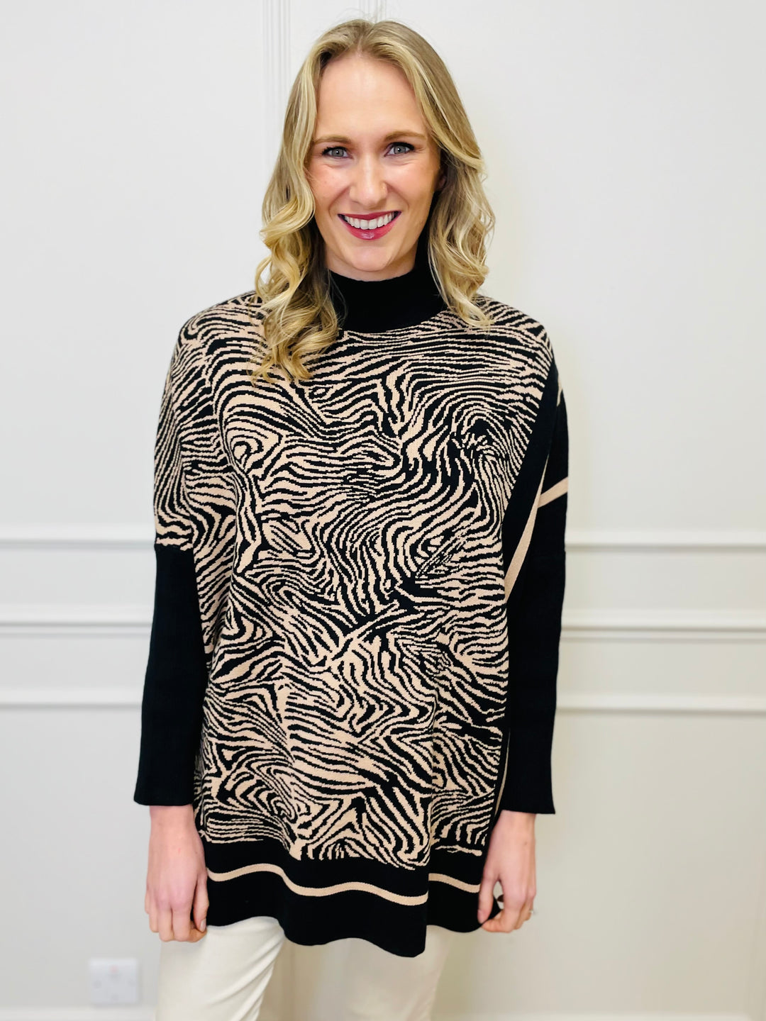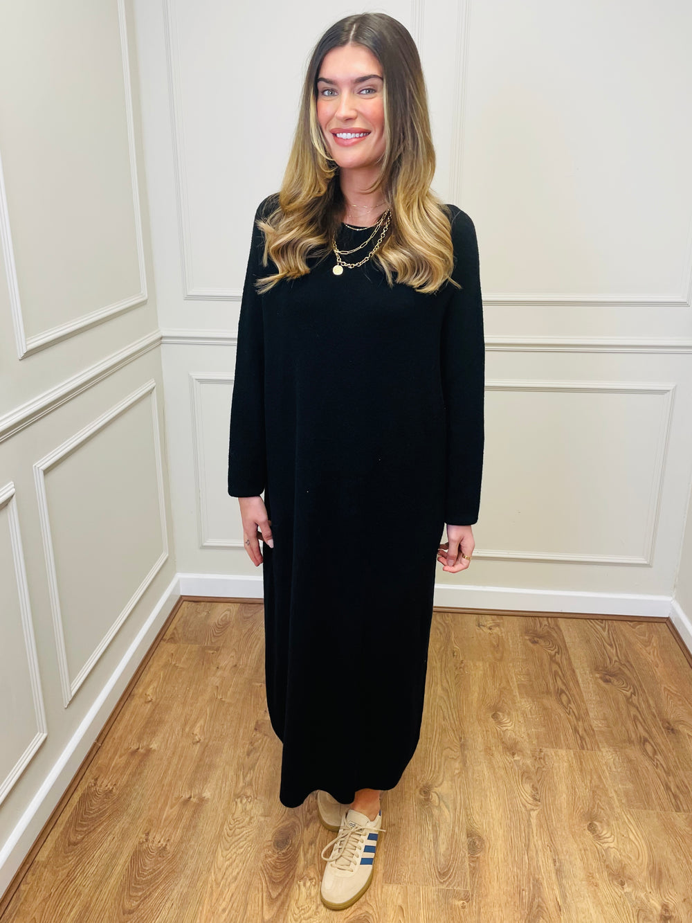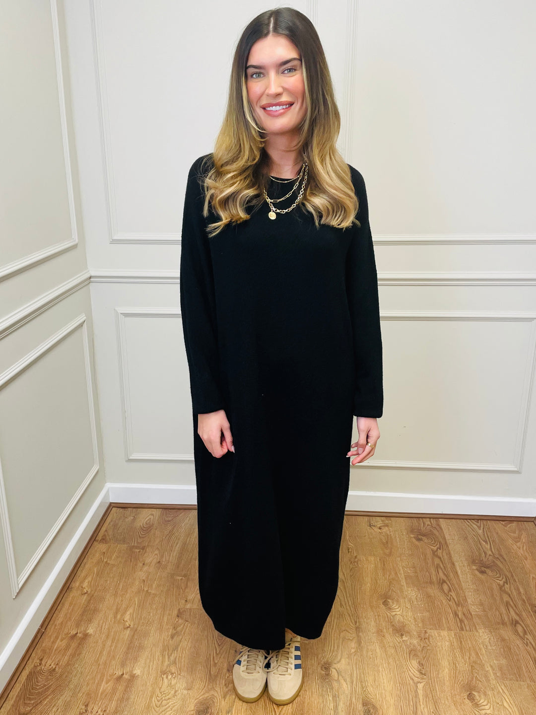 "BELINDA" Cable Knit Roll Neck Dress-Black