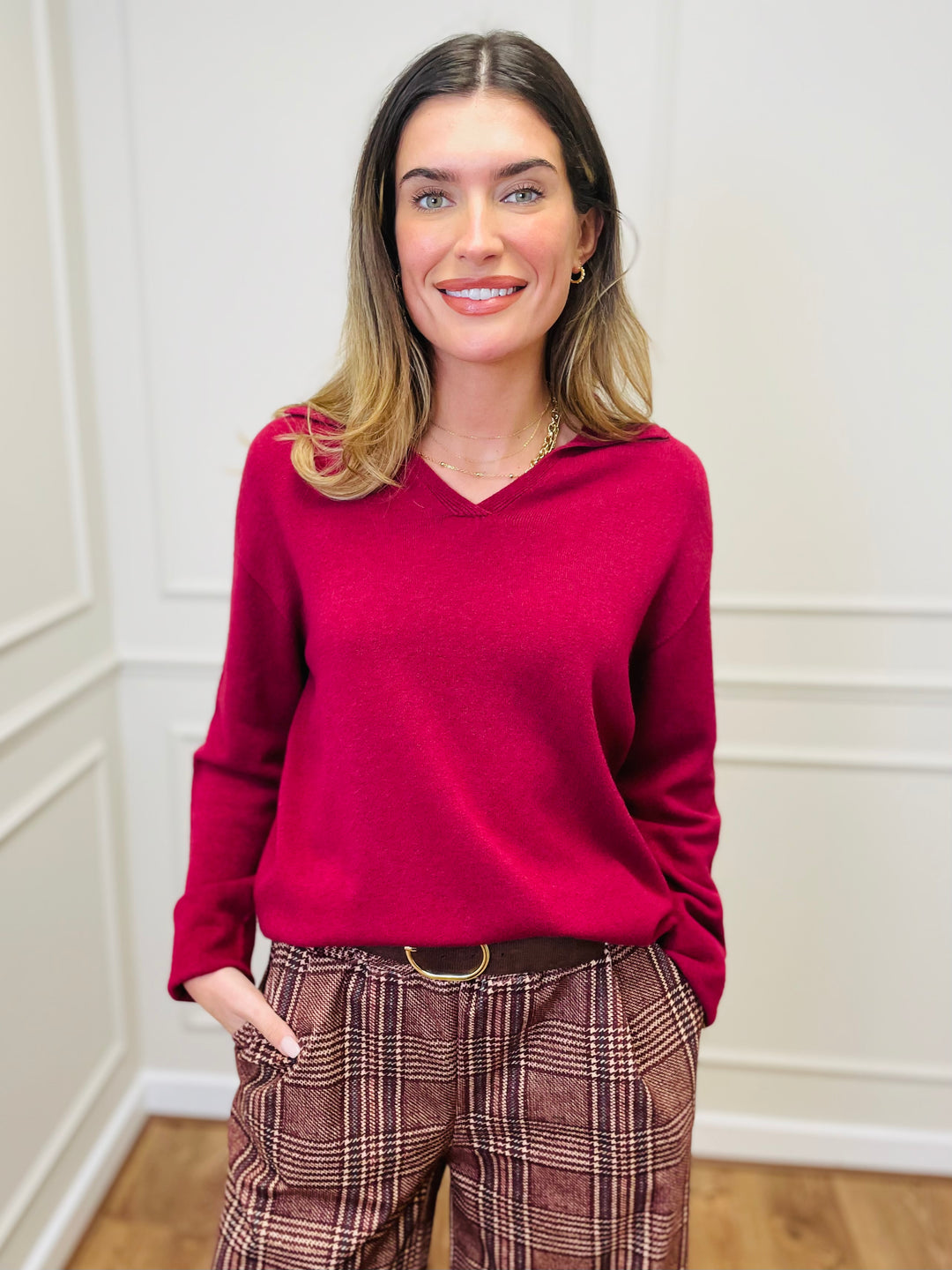 "NIKO" LUXURY Fine Knit Jumper-Burgundy