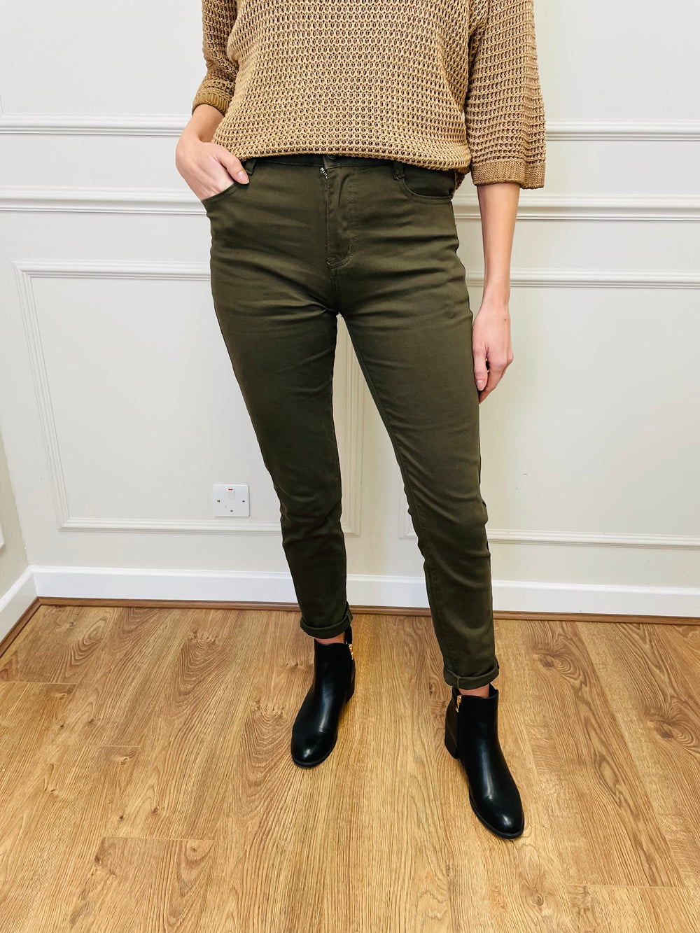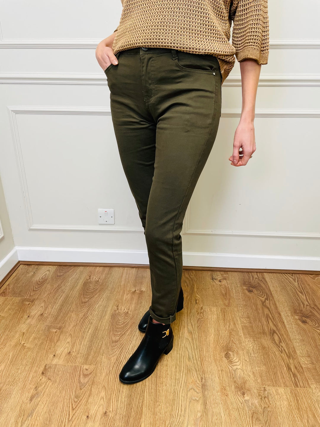 "ALEXANDRA" Stretch Denim Jeans-Green