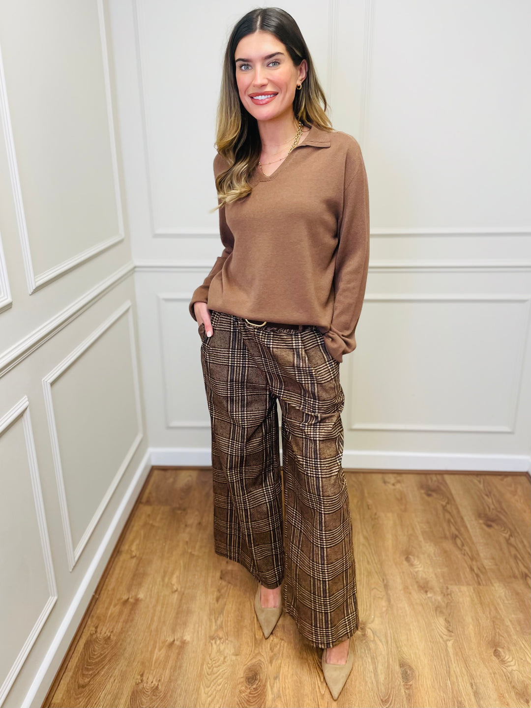 "ALANI" Check Print Trouser-Brown/Cream & Navy