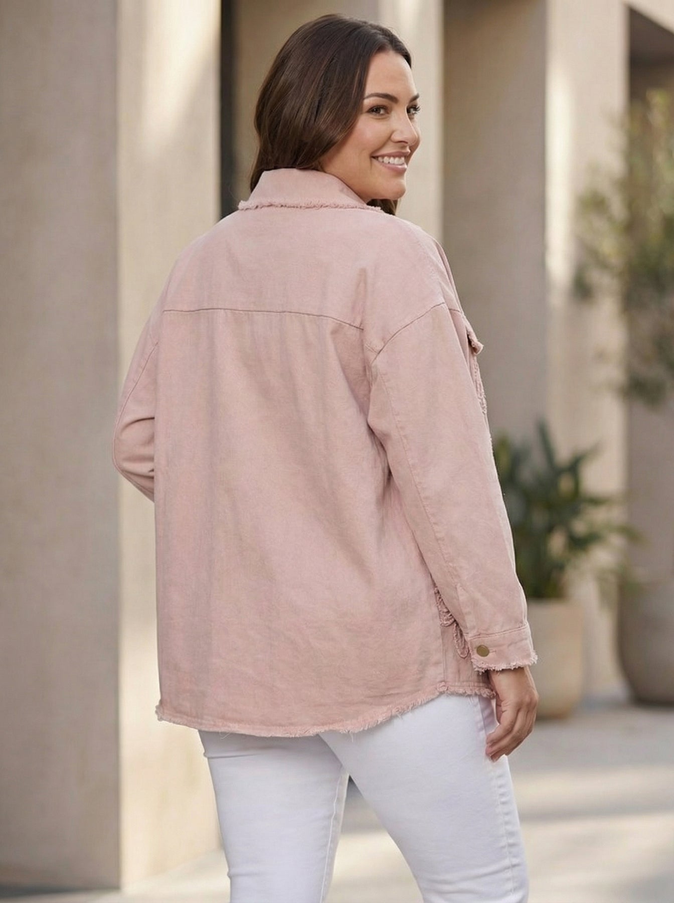 "HARRIET” Relaxed Fit Denim Jacket - Blush Pink