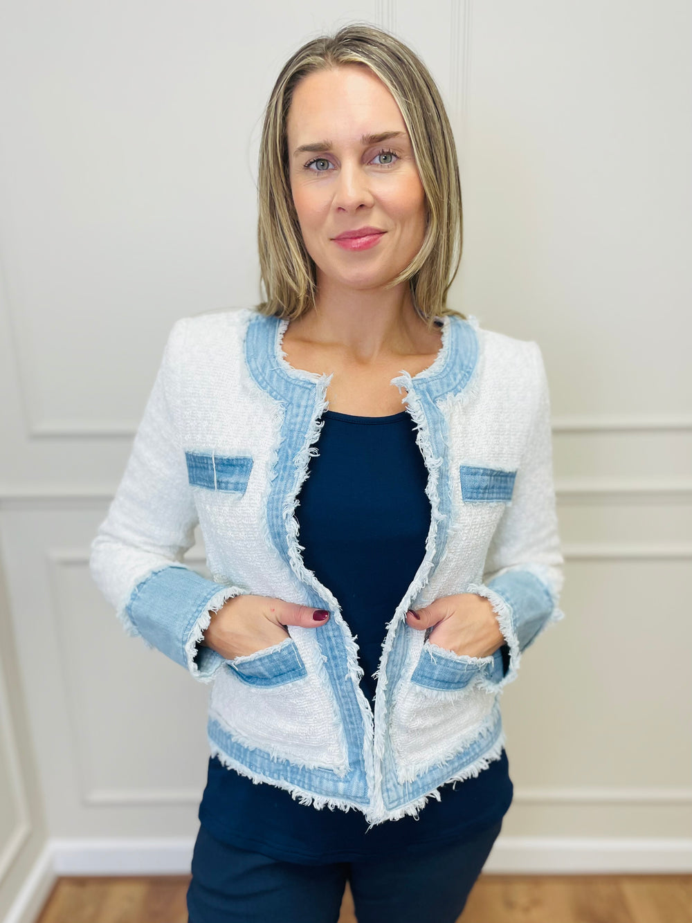 "COCO" Contrast Trim Jacket-Cream & Light Denim