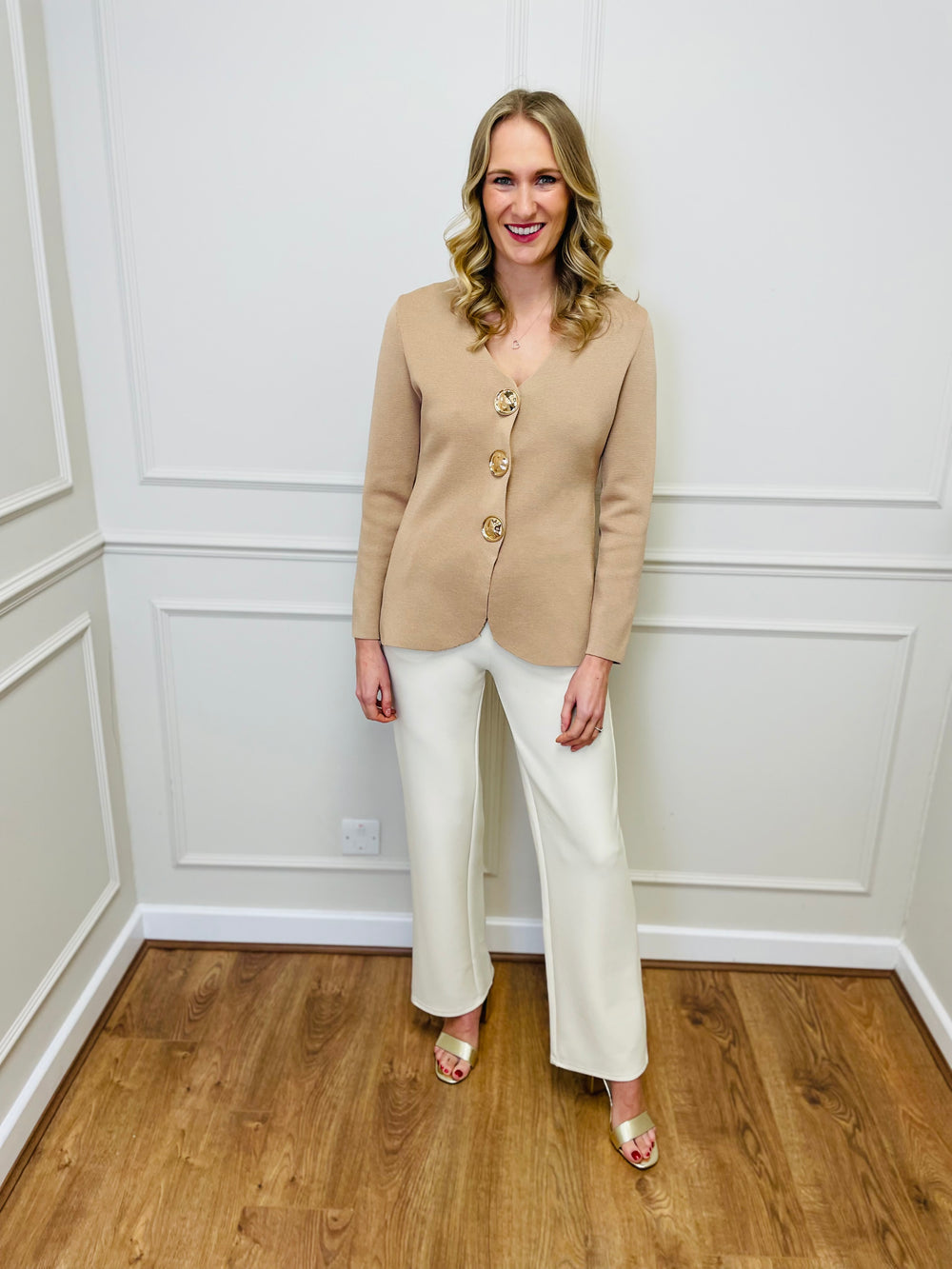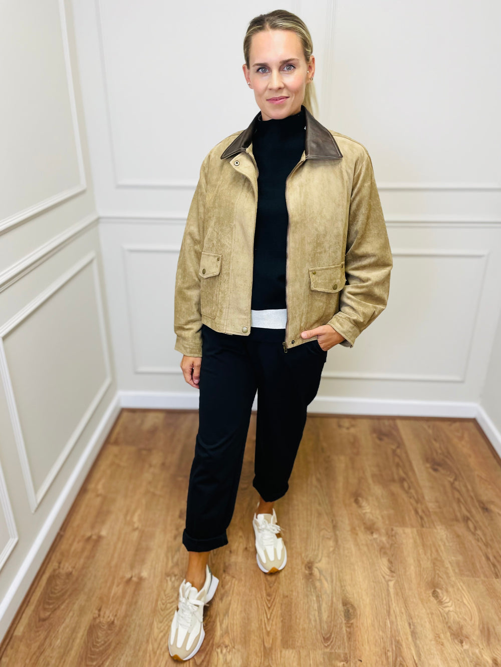 "COCO" Contrast Trim Jacket-Cream & Dark Denim