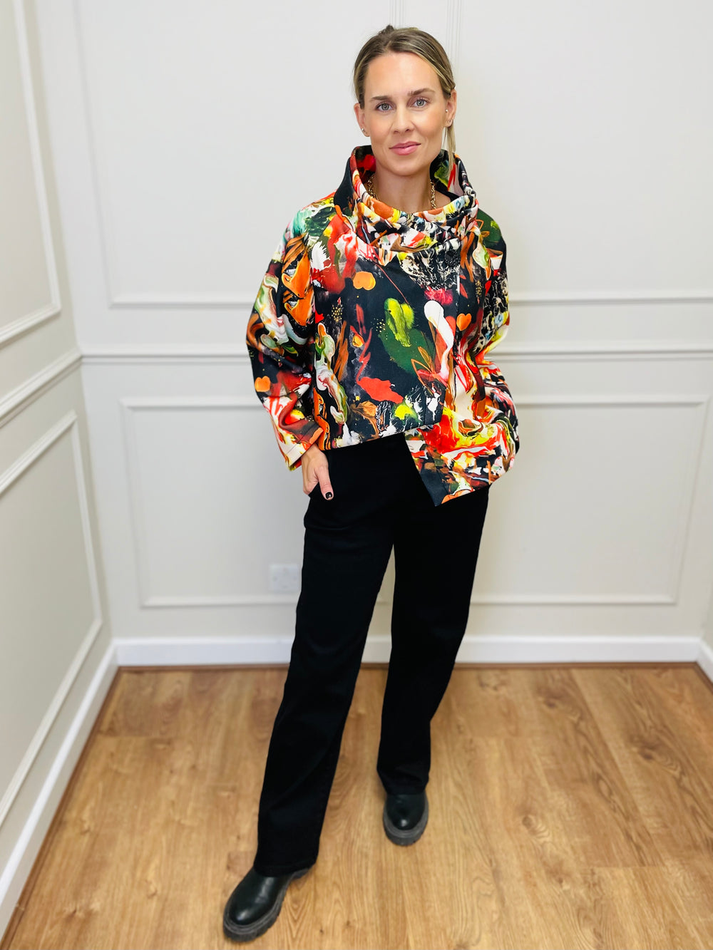 "ALLY" Artistic Print Bomber Jacket-Multicolour