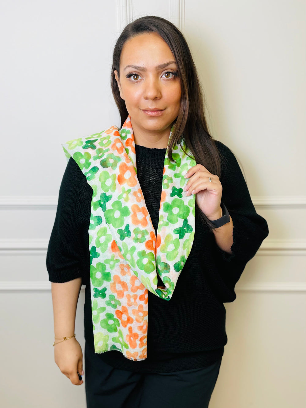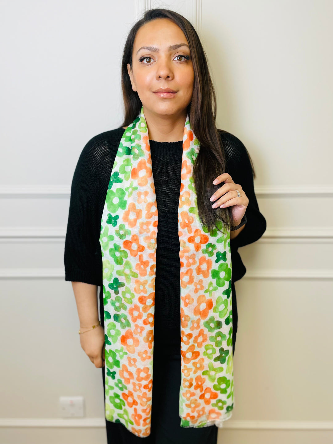 "STACEY" Chiffon Floral Dress-Black & Orange