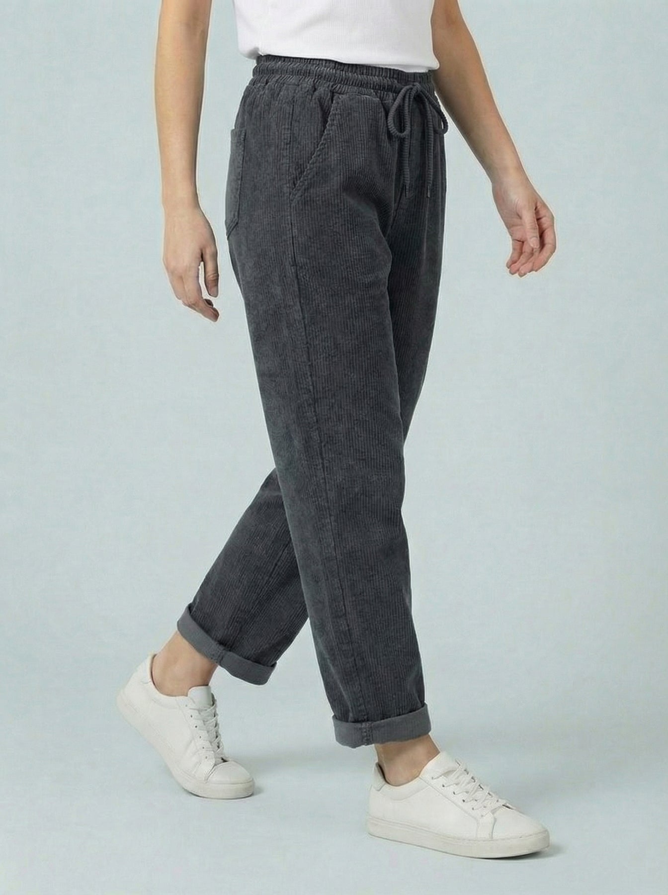 "MEGAN” Cord Barrel Trouser - Slate Grey