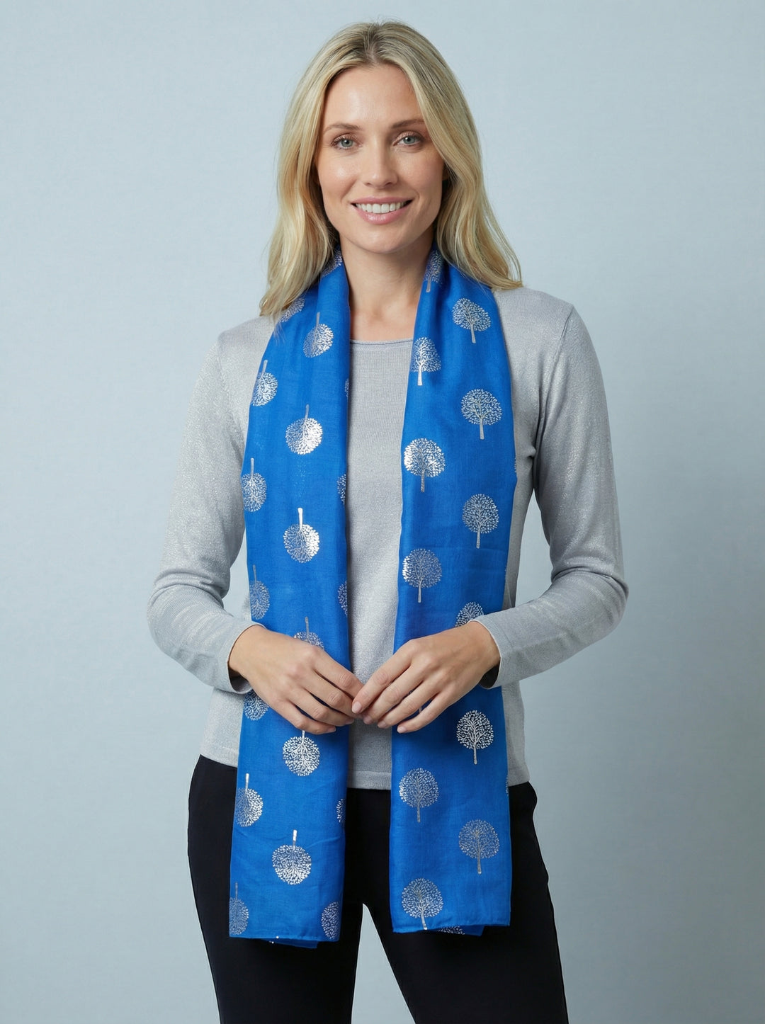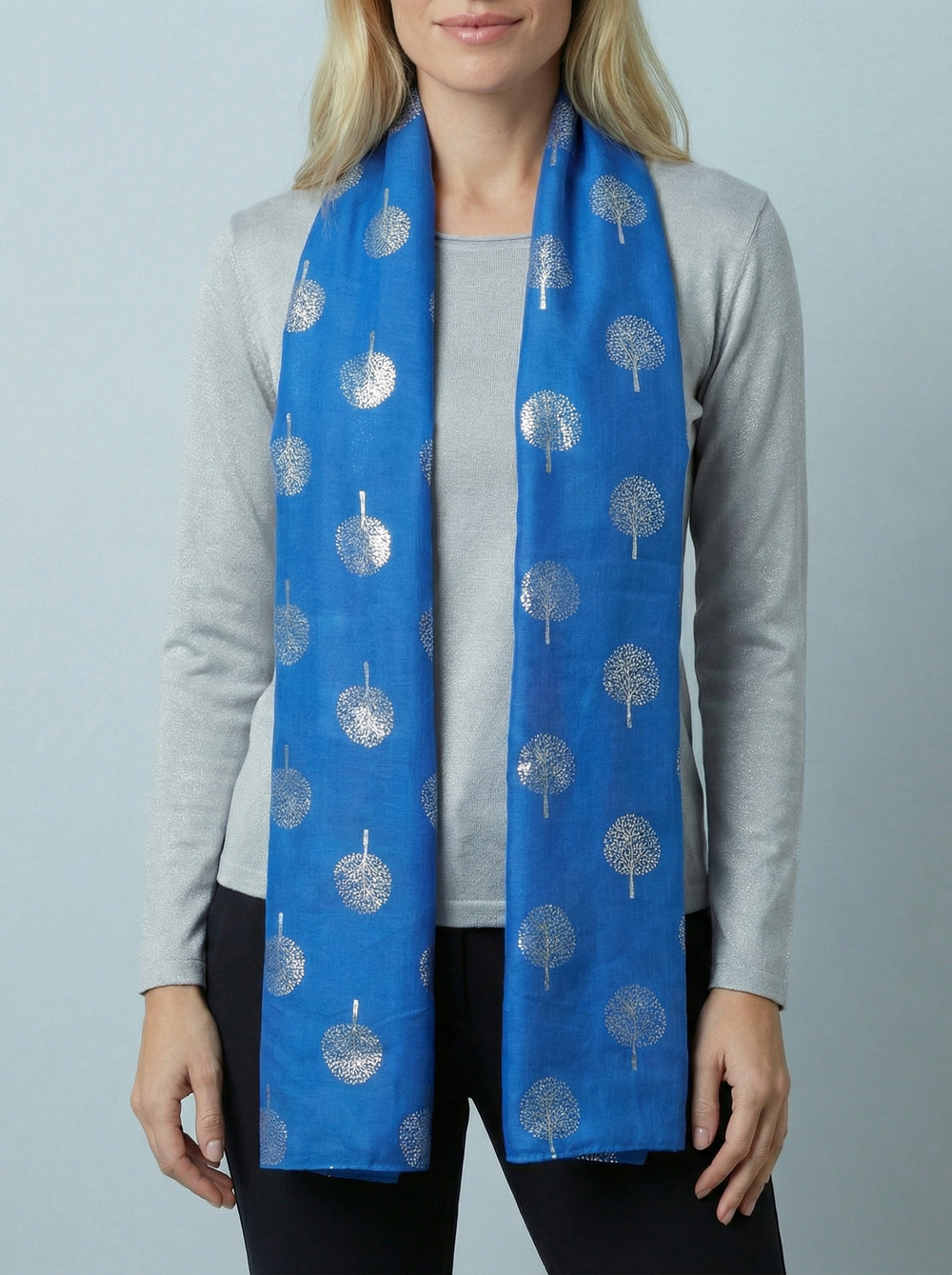 No.120 Tree Print Scarf-Blue & Grey