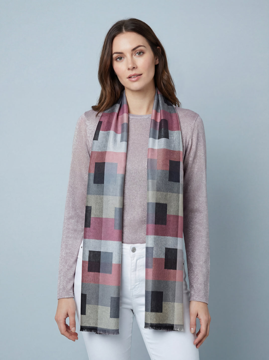 Block Print Scarf-Grey/Pink & Black