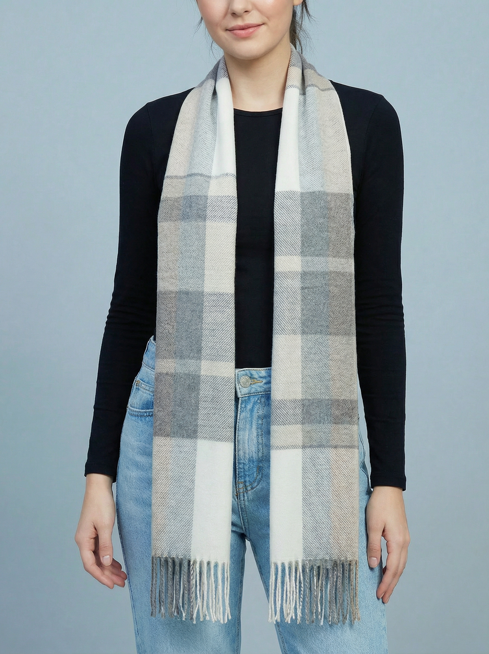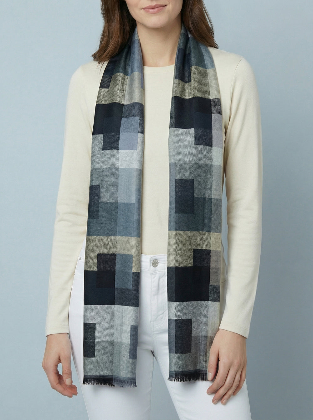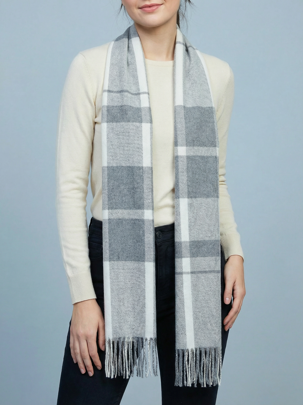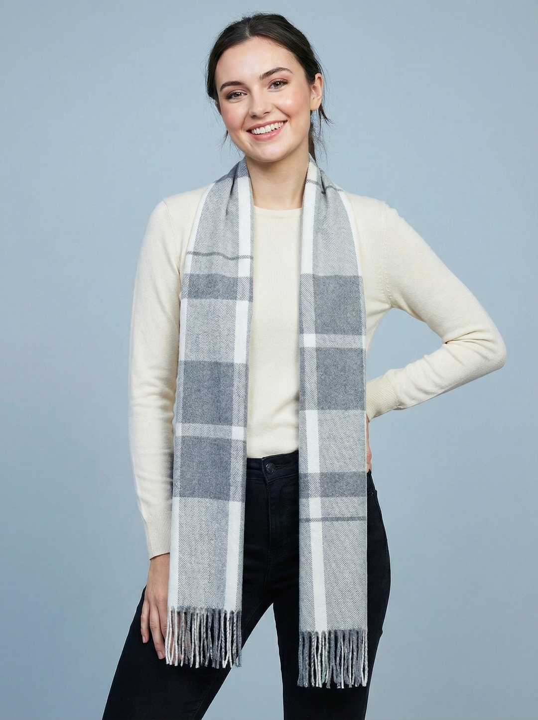 Check Print Scarf-Silver & White